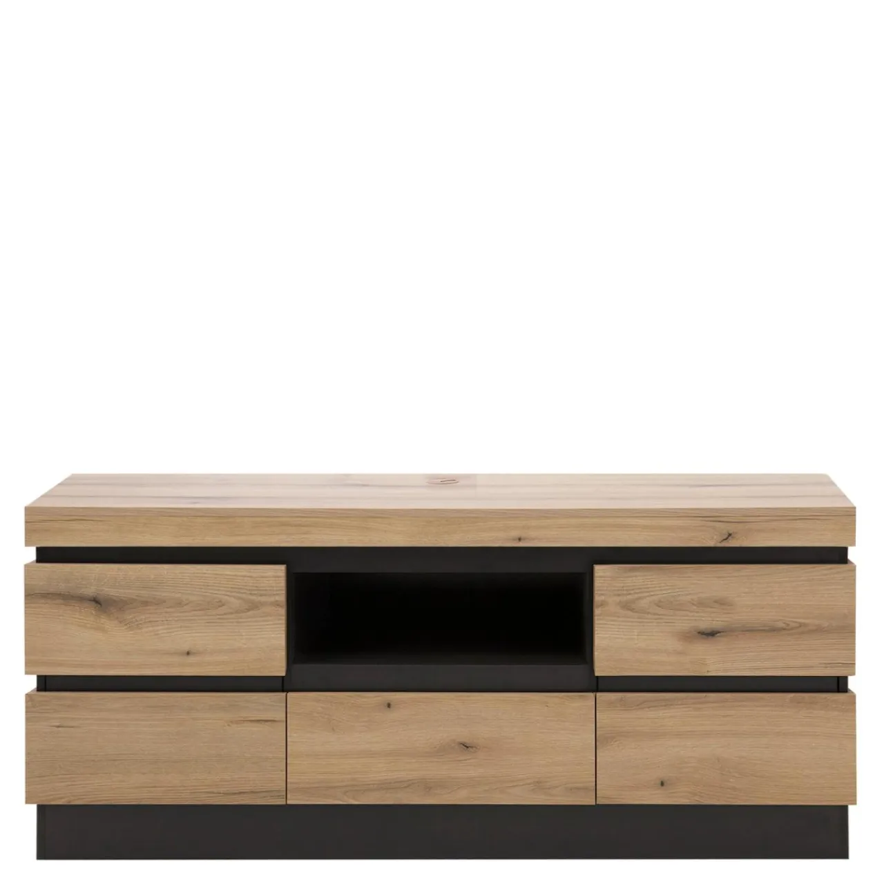Szukasz masywnej szafki pod telewizor z wnęką na sprzęt? Wybierz szafkę CORTE i ciesz się jej nowoczesnym wyglądem.