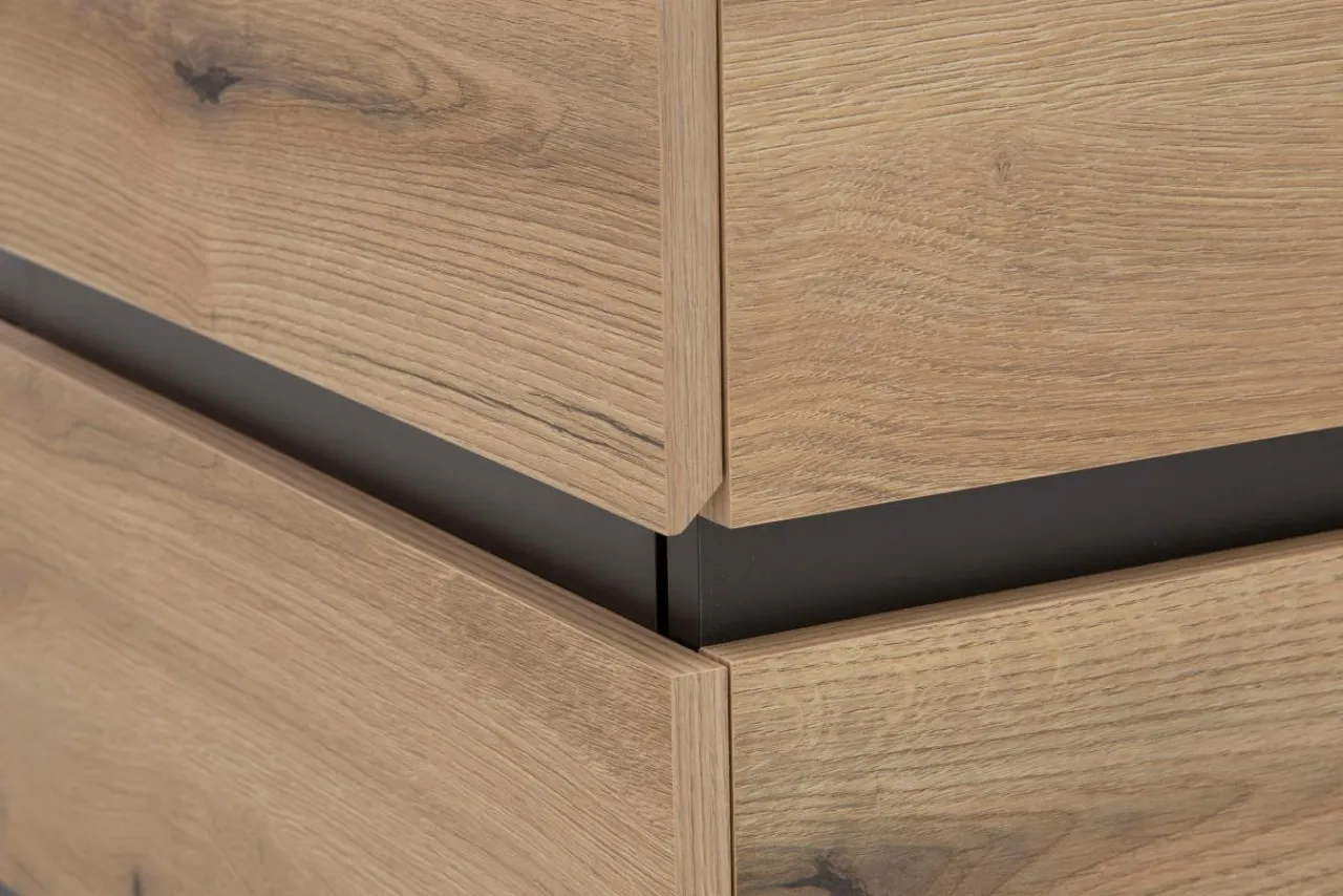- Szafkę wykonano z 16 mm płyty meblowej pokrytej laminatem w kolorze jasnego dębu coast evoke.