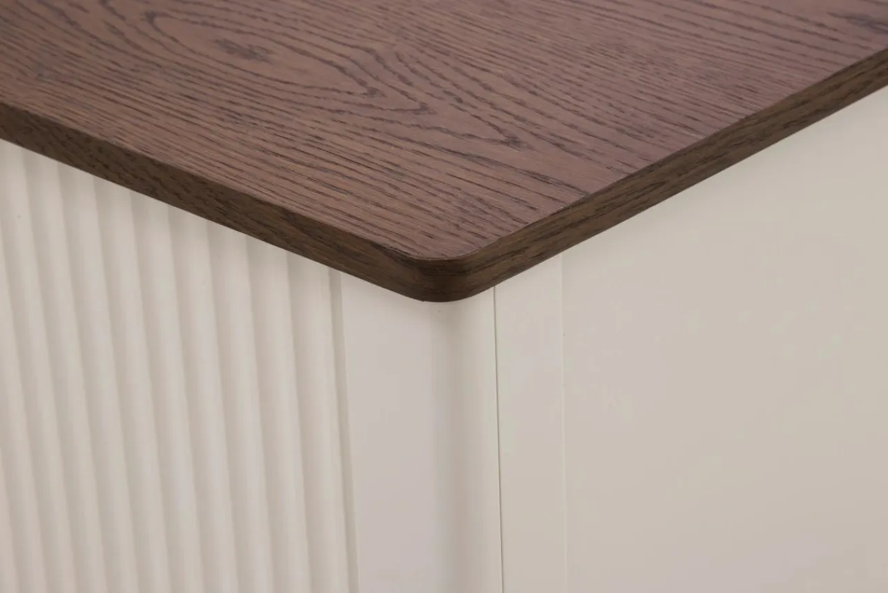 Meble z kolekcji WENECJA wykonane zostały z troską o najmniejsze szczegóły. Blaty w kolorze ciemnego drewna pokryte są naturalną okleiną. Meble w dotyku przypominają kaszmir, a pod palcami czuć słoje drewna. Charakterystyczne cechy mebli WENECJA to: