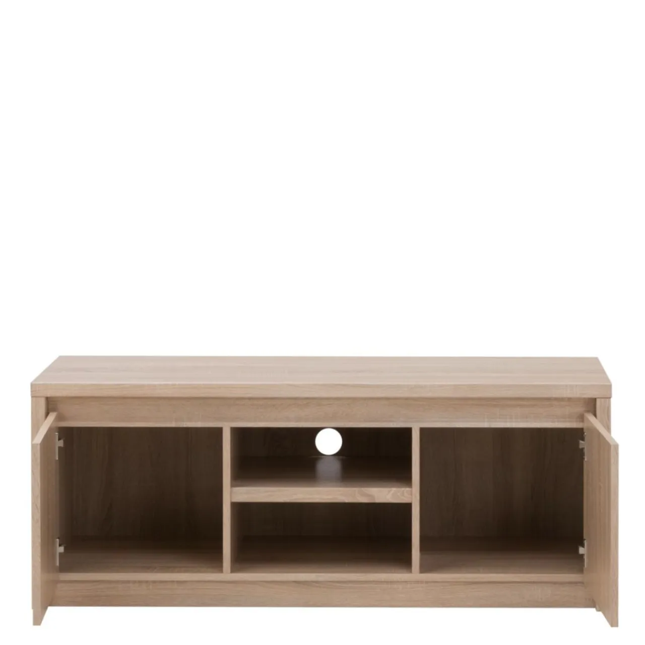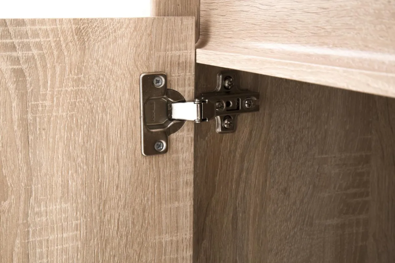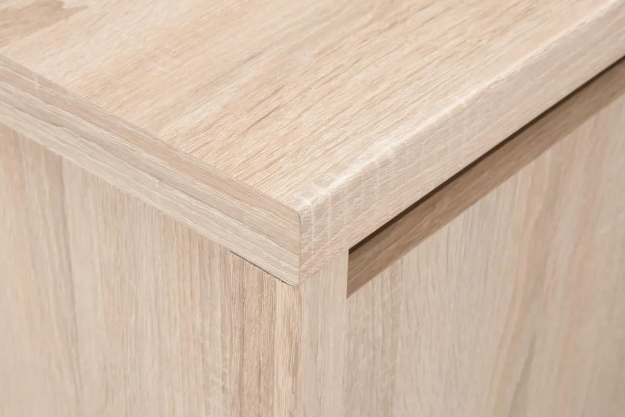 Szafka RTV NORTON charakteryzuje się prostą, minimalistyczną formą, która sprawia, że mebel jest wprost stworzony do nowoczesnych wnętrz. Laminat w jasnym kolorze dębu sonoma, dekorem przypominający drewno, wprowadzi do pomieszczenia przytulny klimat. Brak tradycyjnych uchwytów sprawia, że mebel łatwiej wkomponować w dowolną aranżację.