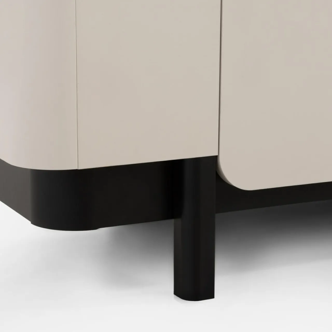 - Połączenie ciepłego piaskowego beżu z czarnymi elementami wpisuje się w nowoczesne wnętrza i aktualne trendy.