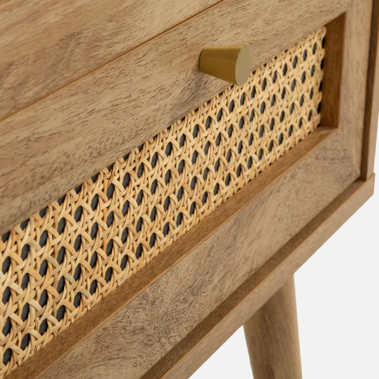 Kolekcję FUZIONE wyróżniają fronty wykonane z naturalnego rattanu, dlatego wpiszą się też w styl etniczny czy retro, dając Ci swobodę aranżacji.