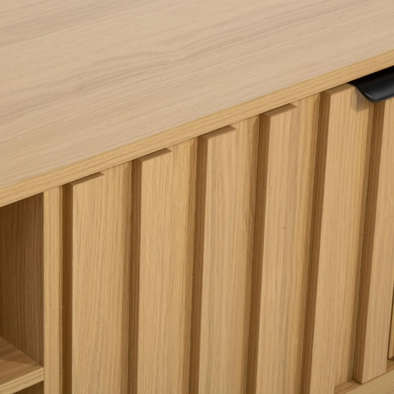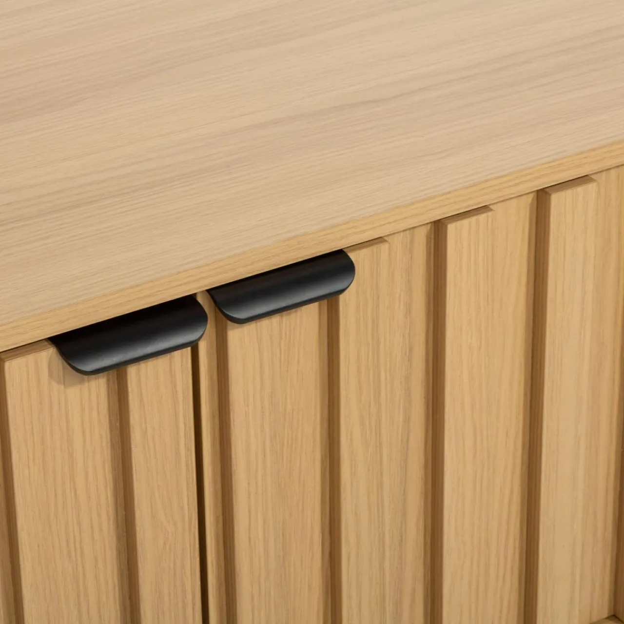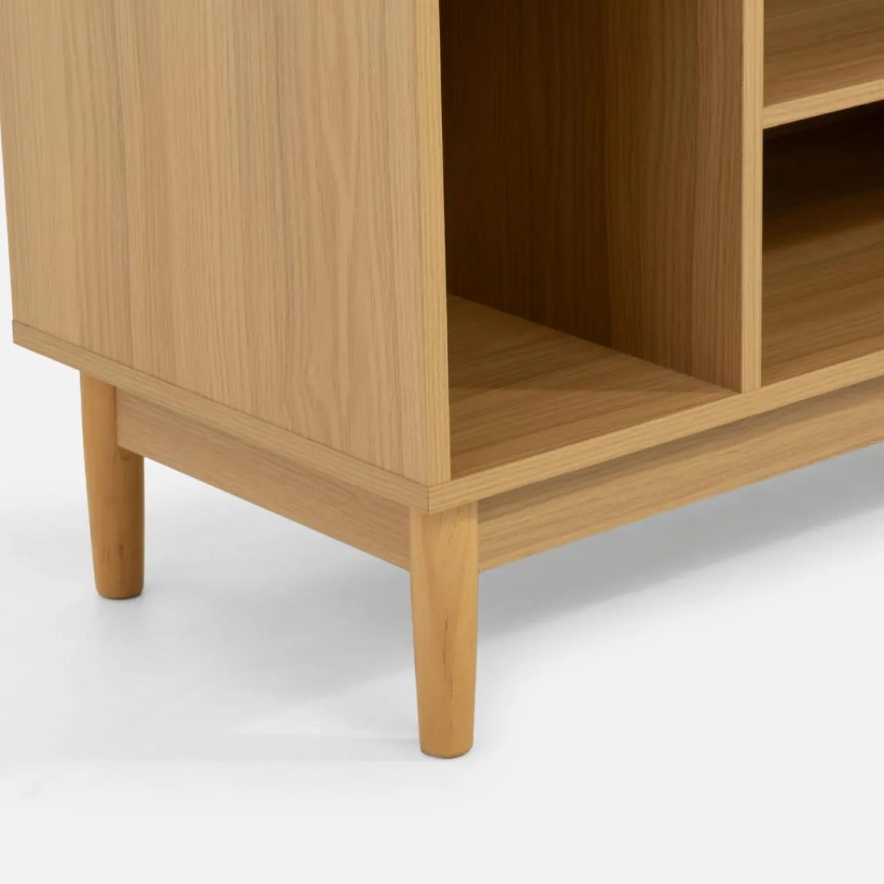 Zestaw mebli w kolorze naturalnego dębu, które pasują zarówno do salonu, jak i przedpokoju.
