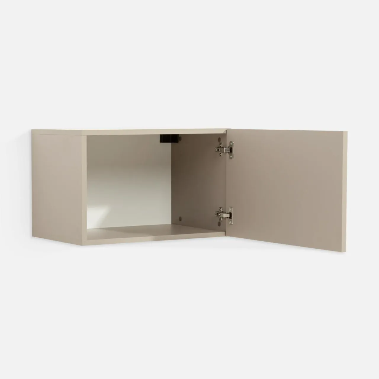 Pozioma szafka wisząca CREMONA ma niecałe 40 cm wysokości, dzięki czemu świetnie sprawdzi się do zabudowy wyższej części ściany lub między ścianą a sufitem.