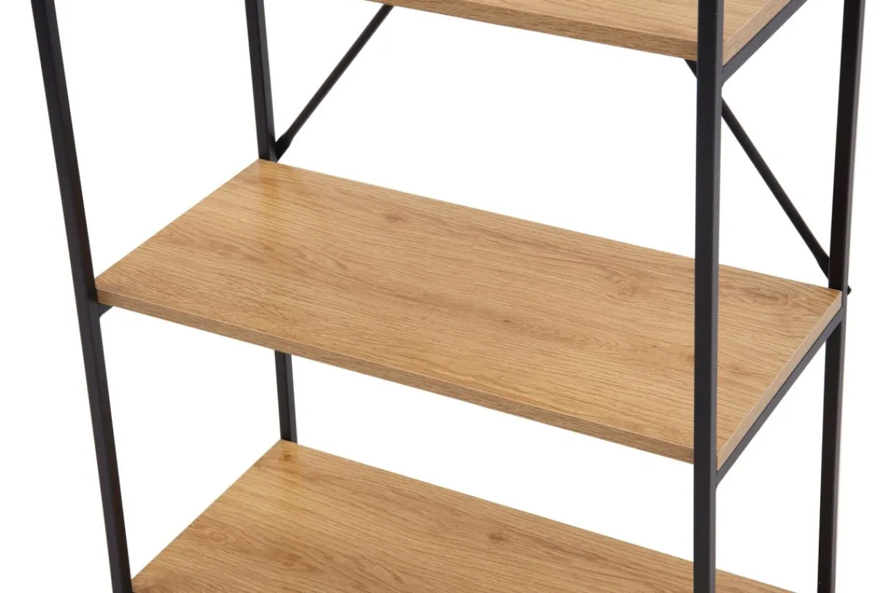 - Metalowy stelaż został wykończony czarną, matową farbą, która nadaje regałowi surowy wygląd.
