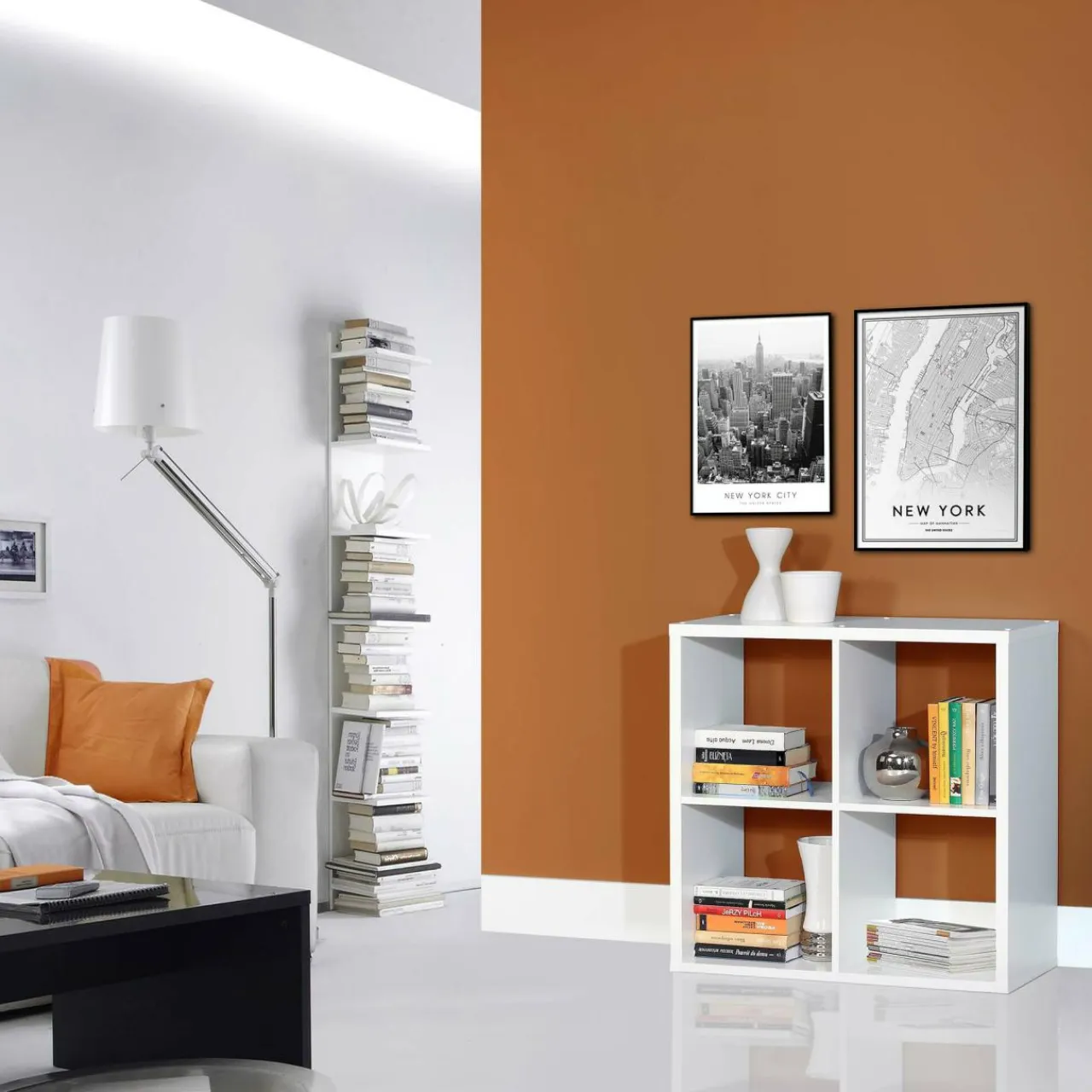 Regał MAURO to minimalistyczna bryła w białym kolorze.