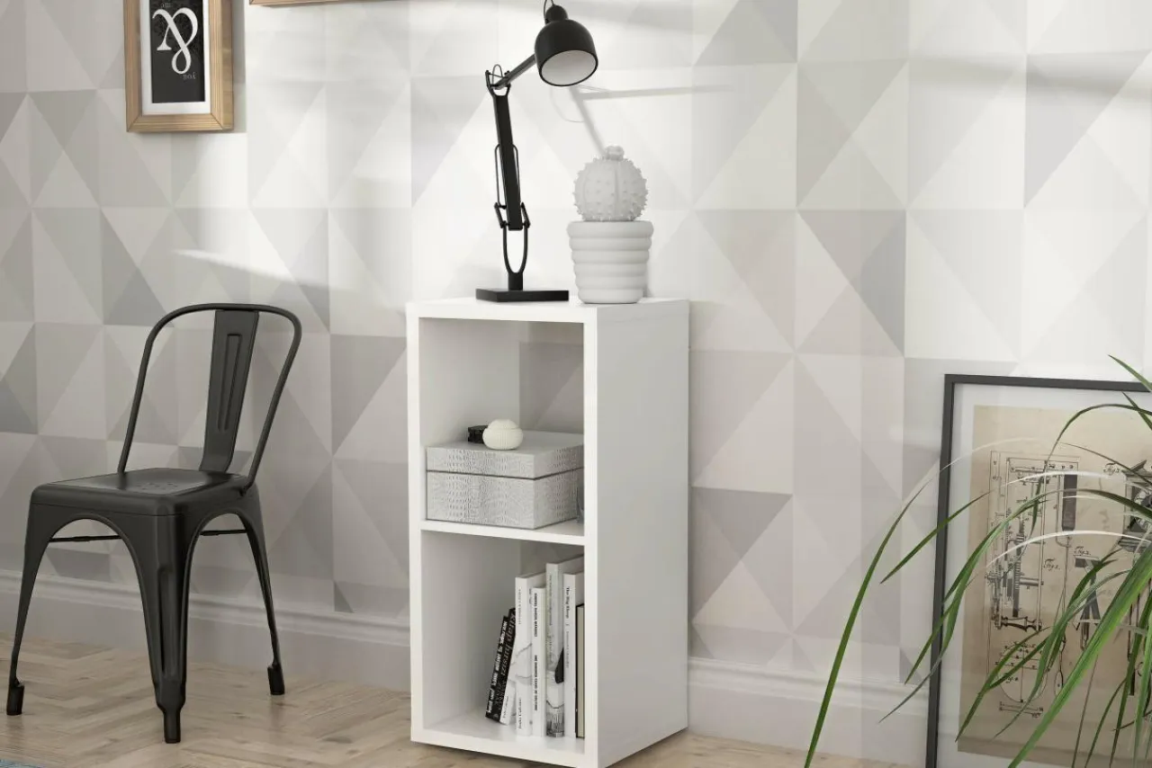 Regał MAURO to minimalistyczna bryła w białym kolorze.