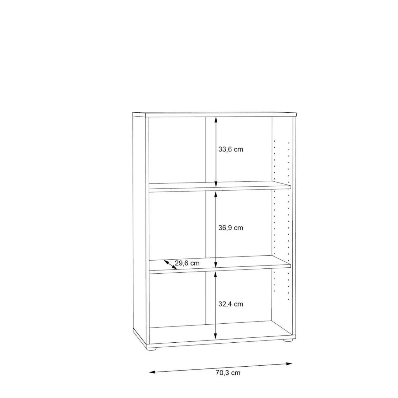 ● Regał TEMPRA 2 posiada 3 otwarte półki