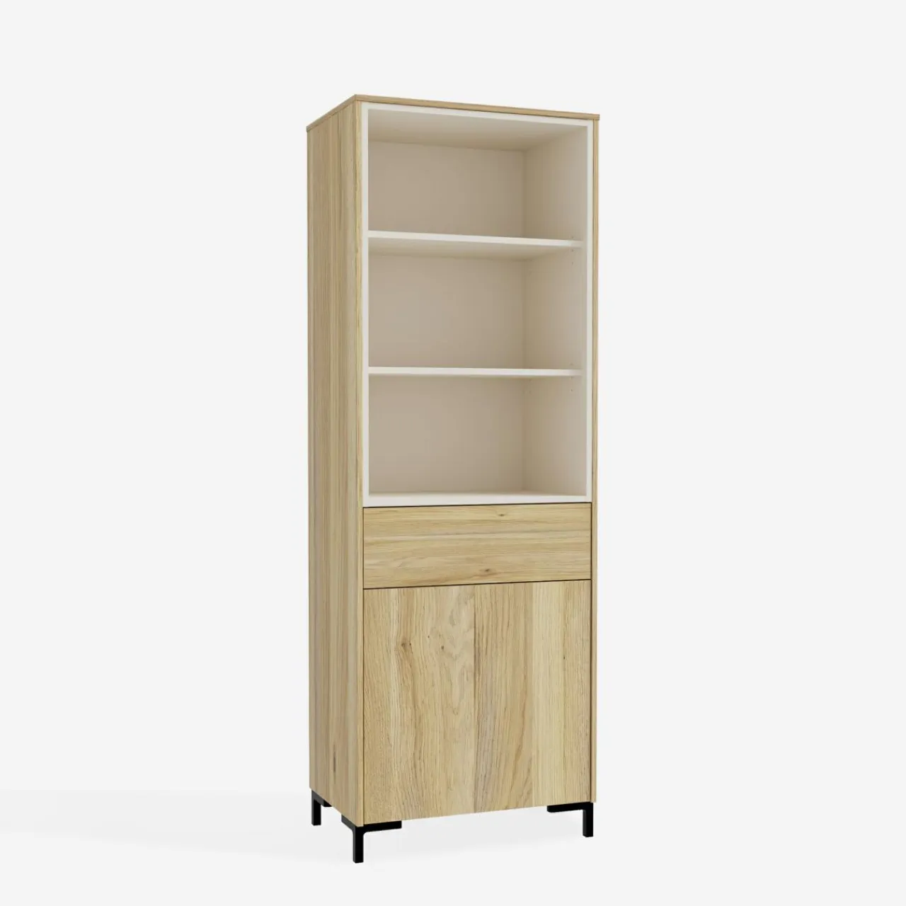 Regał GALACTIQUE jest częściowo zabudowany. Dekoracje, książki czy drobne rośliny postaw w otwartych wnękach i wyeksponuj je w salonie.