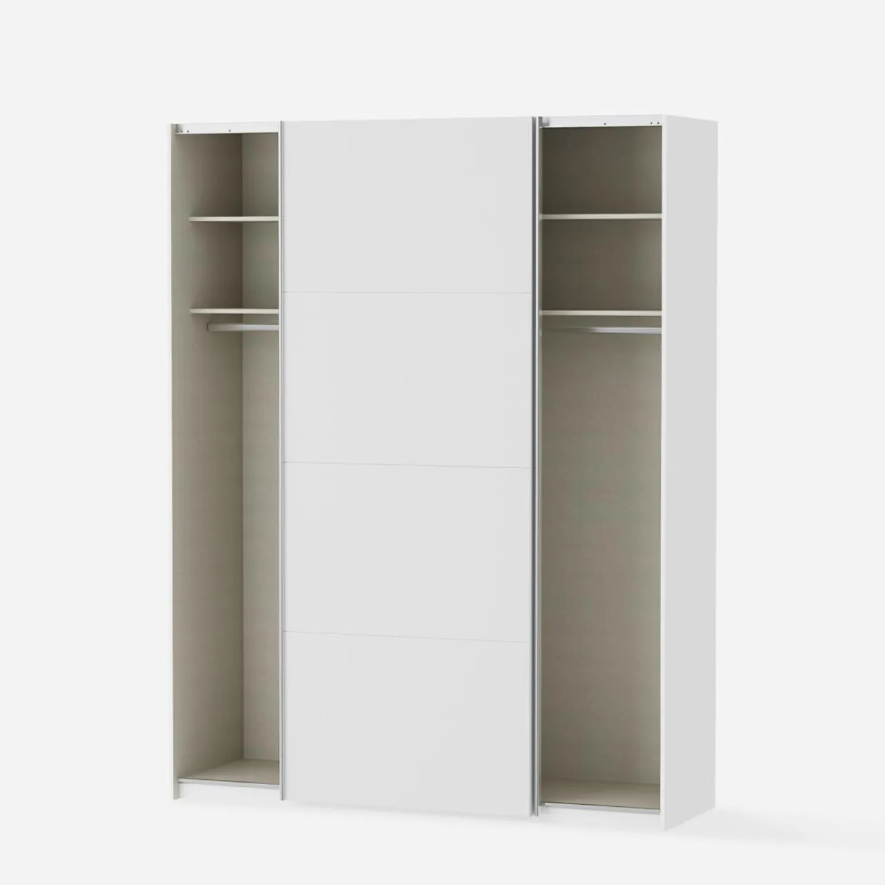 - Podzielona na dwie części — równomierne ułożenie półek i drążków w szafie umożliwia podzielenie wnętrza na różne sposoby; osobna część dla Ciebie i partnera lub dwójki rodzeństwa.