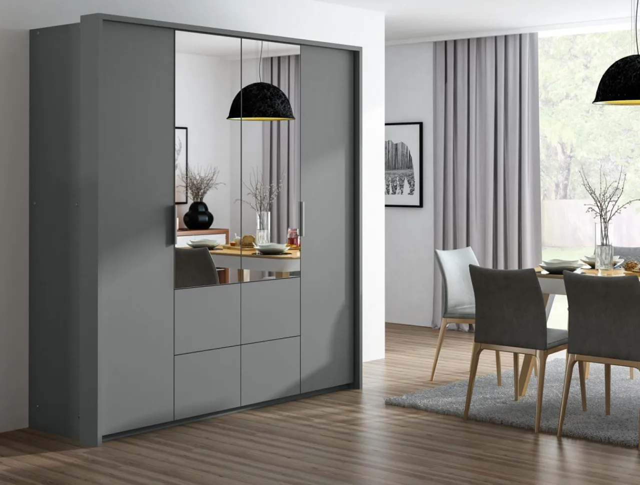 Grafitowa szafa z lustrem do sypialni