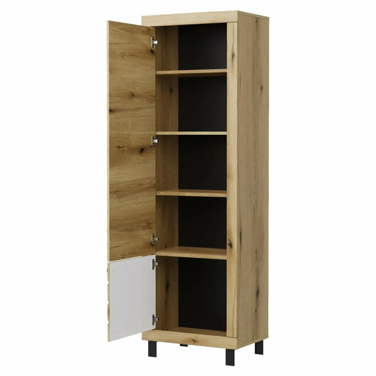 - 5 zamykanych wnęk pomieści książki, dokumenty, ubrania, tekstylia stołowe czy pościel.