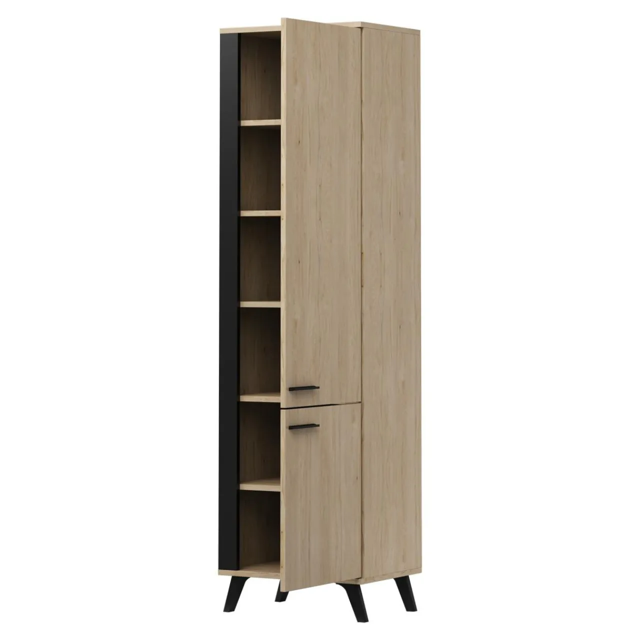 Szafa jest elementem ciekawej kolekcji GAYA, charakteryzującej się harmonijnym połączeniem efektu drewna z czarnymi wstawkami. Meblami z kolekcji można urządzić pomieszczenie nowocześnie, z elementami stylu industrialnego oraz retro. To idealna kolekcja dla miłośników niebanalnych rozwiązań we wnętrzach, nie przytłoczy ale będzie doskonałym uzupełnieniem aranżacji pomieszczenia.
