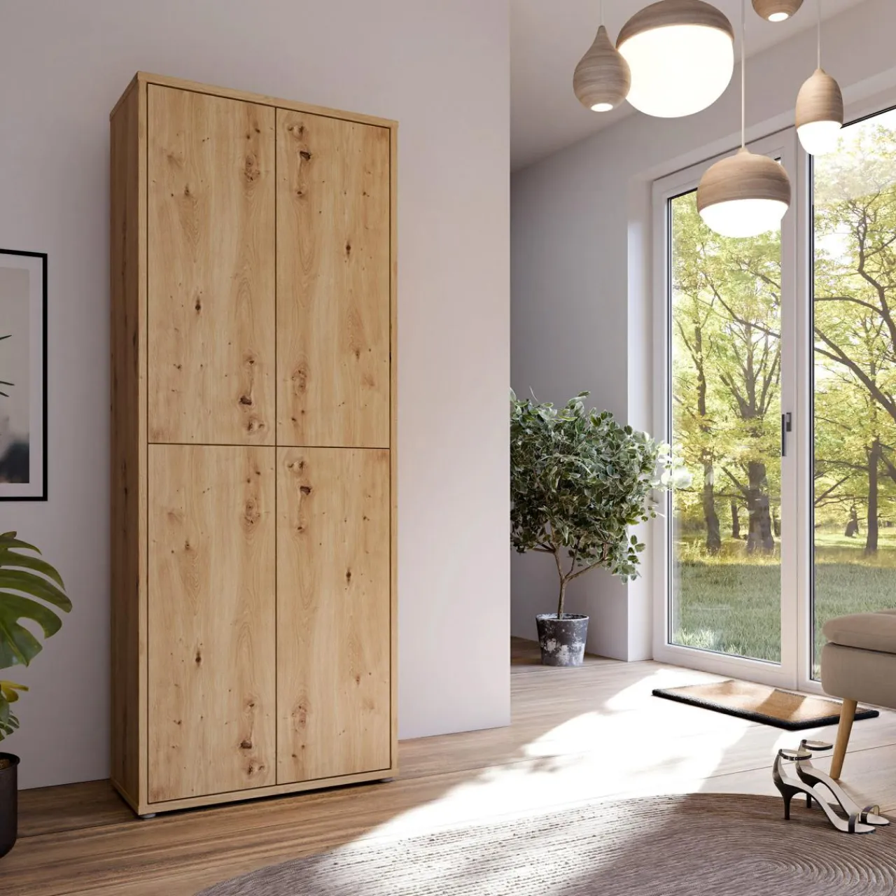 - Dopasuj szafę w wybarwieniu dąb artisan do pozostałych mebli w Twoim domu. Wyraźne sęki, przebarwienia i słoje będą pasowały do wielu mebli o tym samym wykończeniu lub jednolitych kolorach.