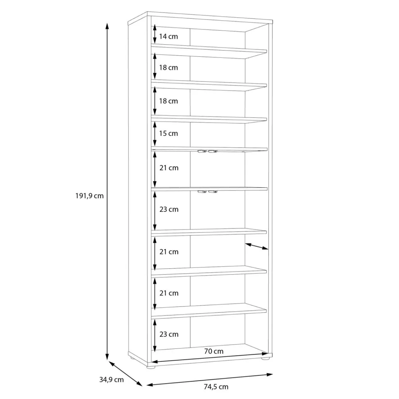 - Głębokie półki pozwalają na ułożenie przechowanie nawet zimowego obuwia.