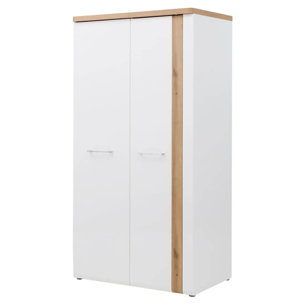 - Dyskretne nóżki-ślizgacze z tworzywa sztucznego ułatwiają przesuwanie szafy minimalizując ryzyko zarysowania podłogi.