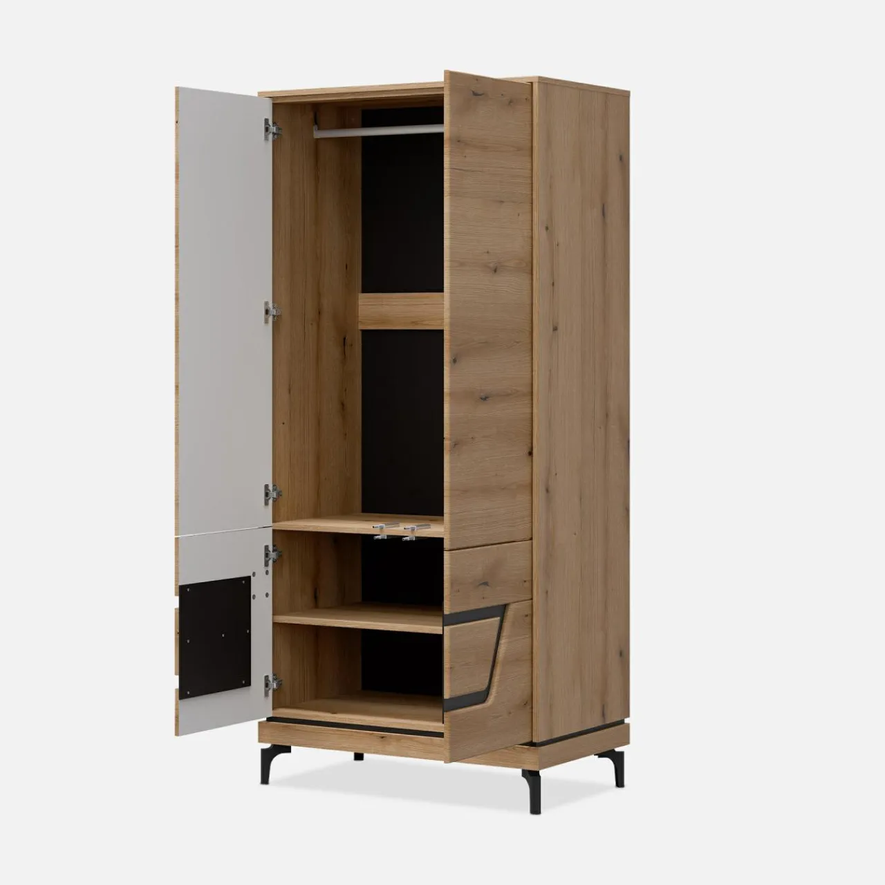 - W 2 wnękach przechowasz obuwie i dodatki – szaliki, czapki.