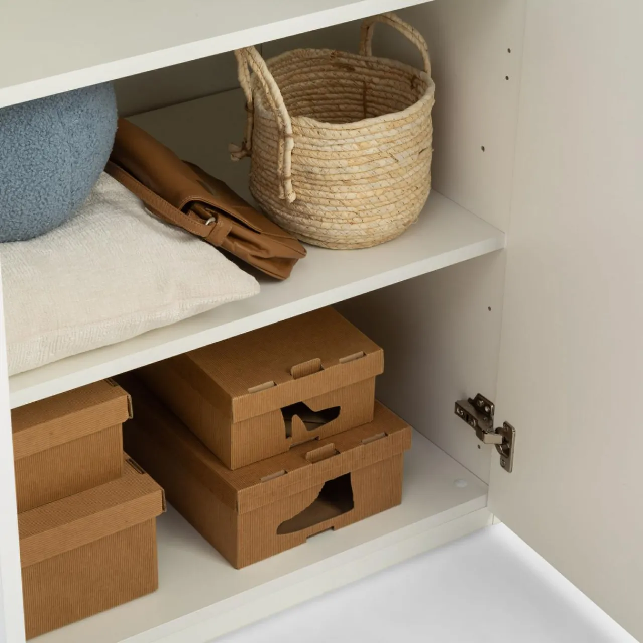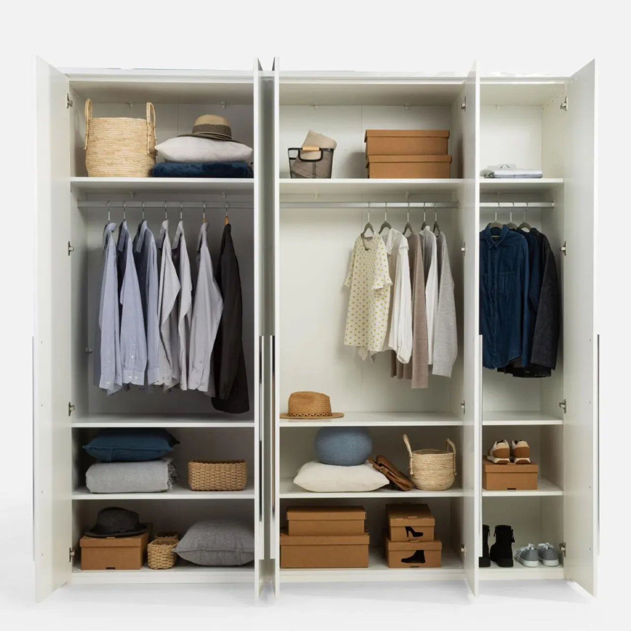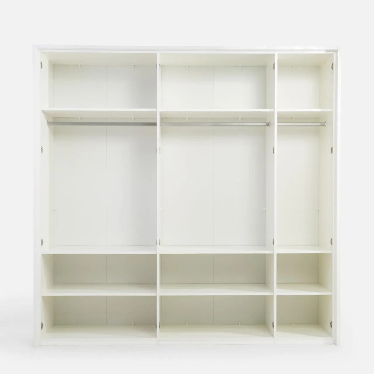 - Modułowa organizacja wnętrza – umożliwia dostosowanie układu 9 półek i 3 drążków do indywidualnych potrzeb.