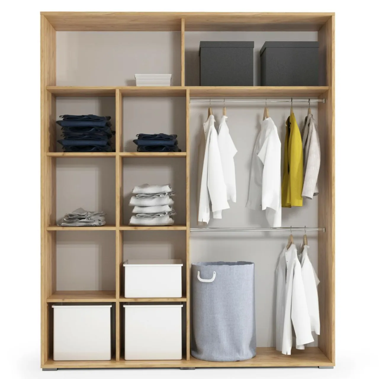 - Drzwi otwierane przesuwanie ułatwiają codzienne korzystanie z szafy.