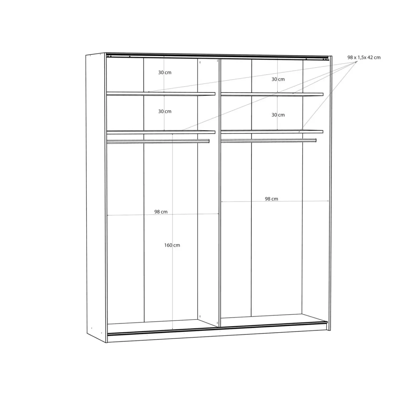 - Podzielona na dwie części — równomierne ułożenie półek i drążków w szafie umożliwia podzielenie wnętrza na różne sposoby; osobna część dla Ciebie i partnera lub dwójki rodzeństwa.
