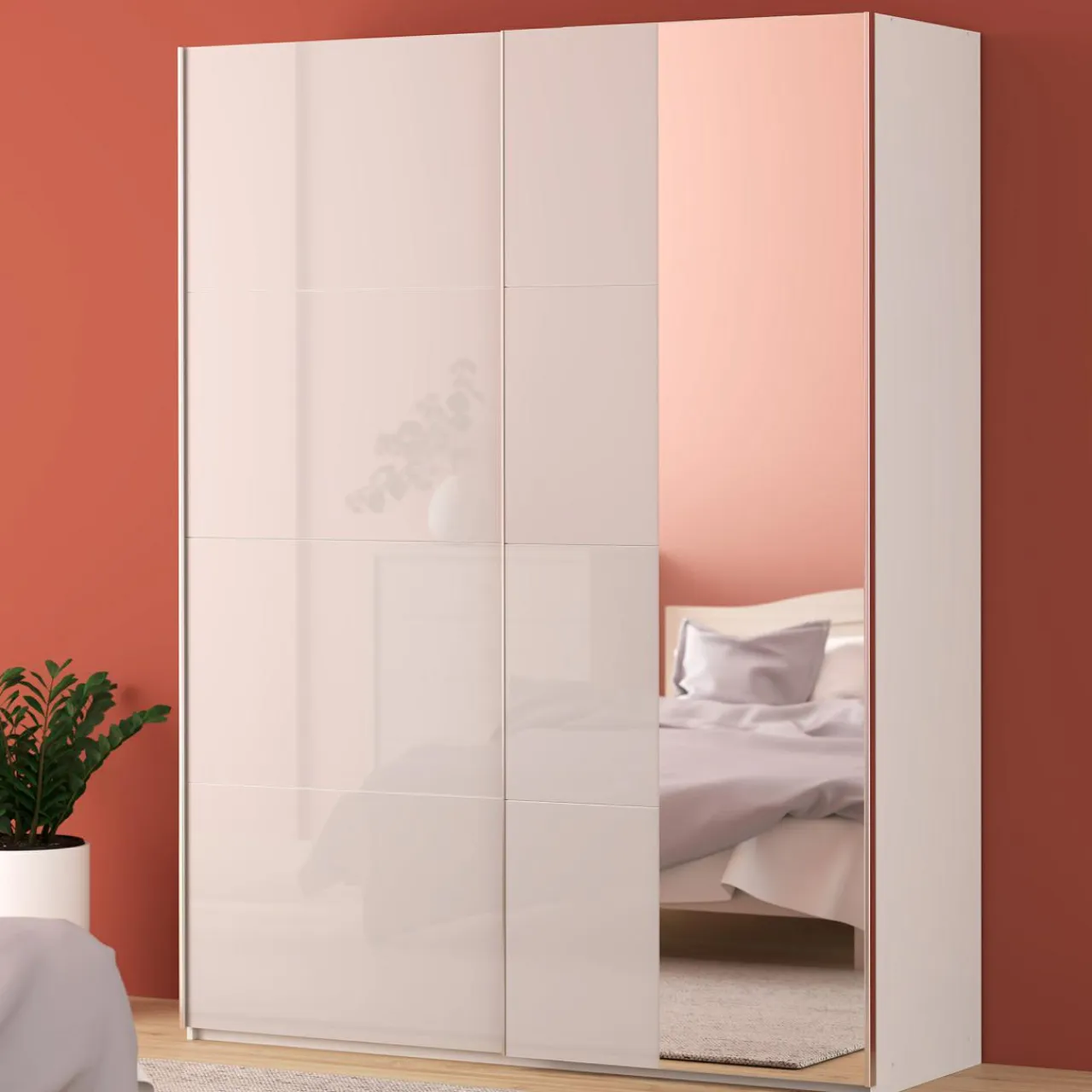 - Minimalistyczna bryła i różne warianty wykończenia — wybierz fronty w macie lub połysku, z lustrem lub bez.