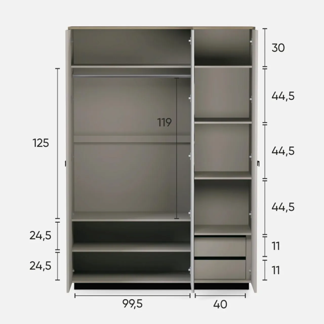 - 8 wnęk – pozwoli Ci posegregować Twoją odzież w takim sposób, by łatwo było Ci znaleźć wybrane elementy garderoby.