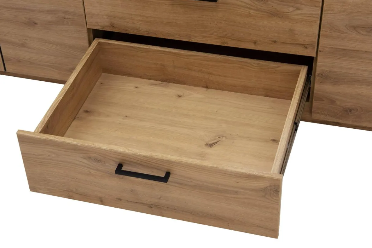 - 2 szuflady osadzone na prowadnicach kulkowych pozwalają na pełny wysuw szuflady i swobodny dostęp do przechowywanych w niej rzeczy.