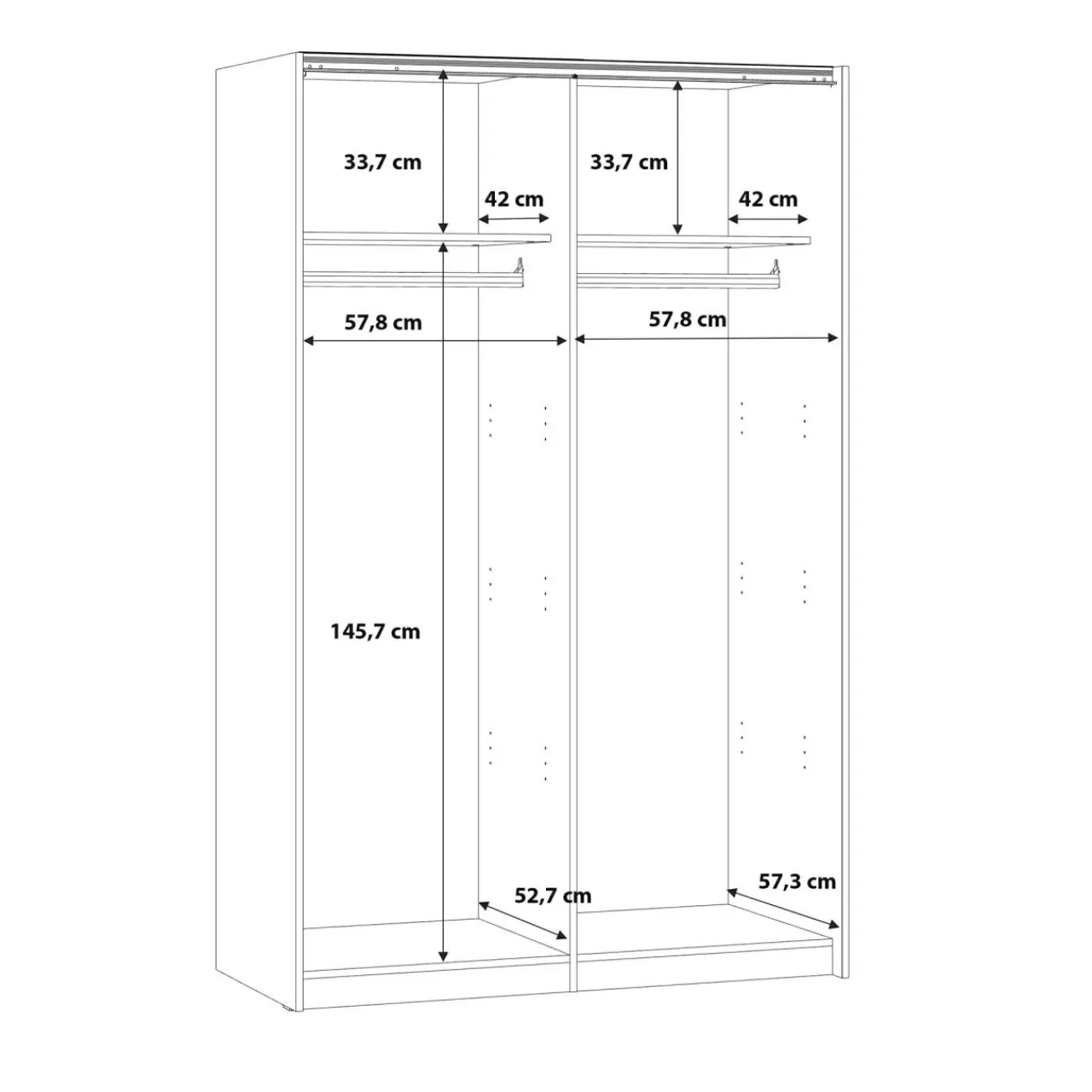 - Na 2 drążkach oddzielisz od siebie delikatną odzież od płaszczy i kurtek lub oddzielisz swoje i partnera ubrania.