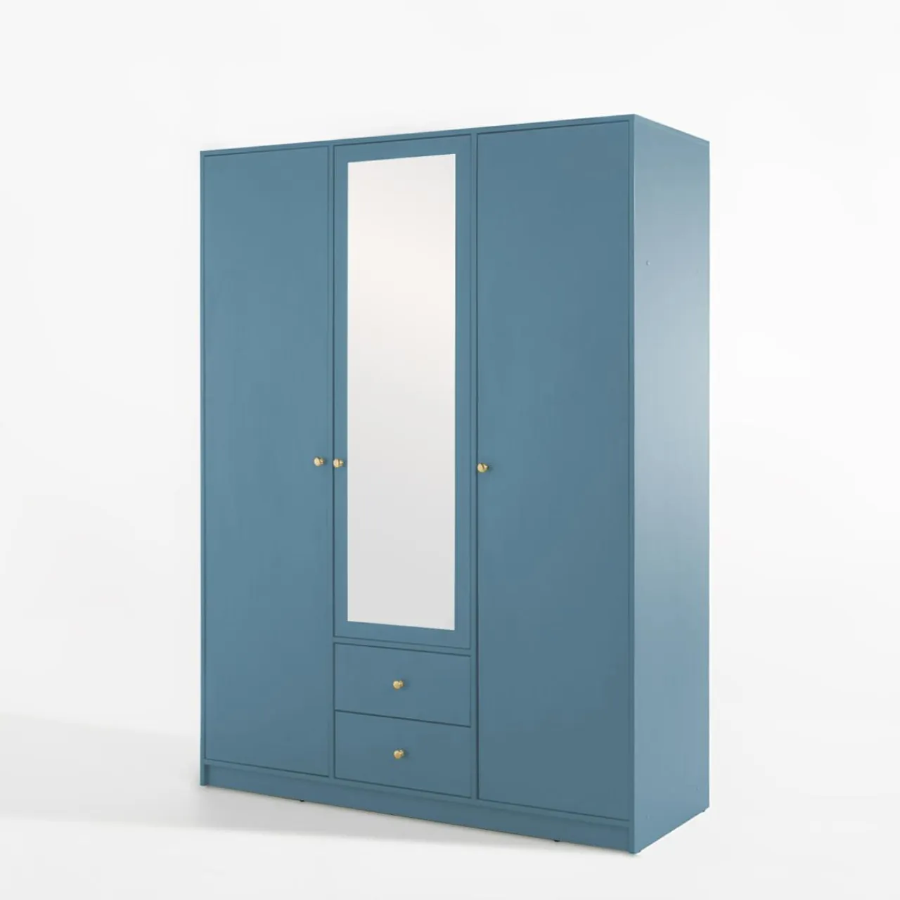 Niebieska szafa z lustrem – kolor nieba w sypialni