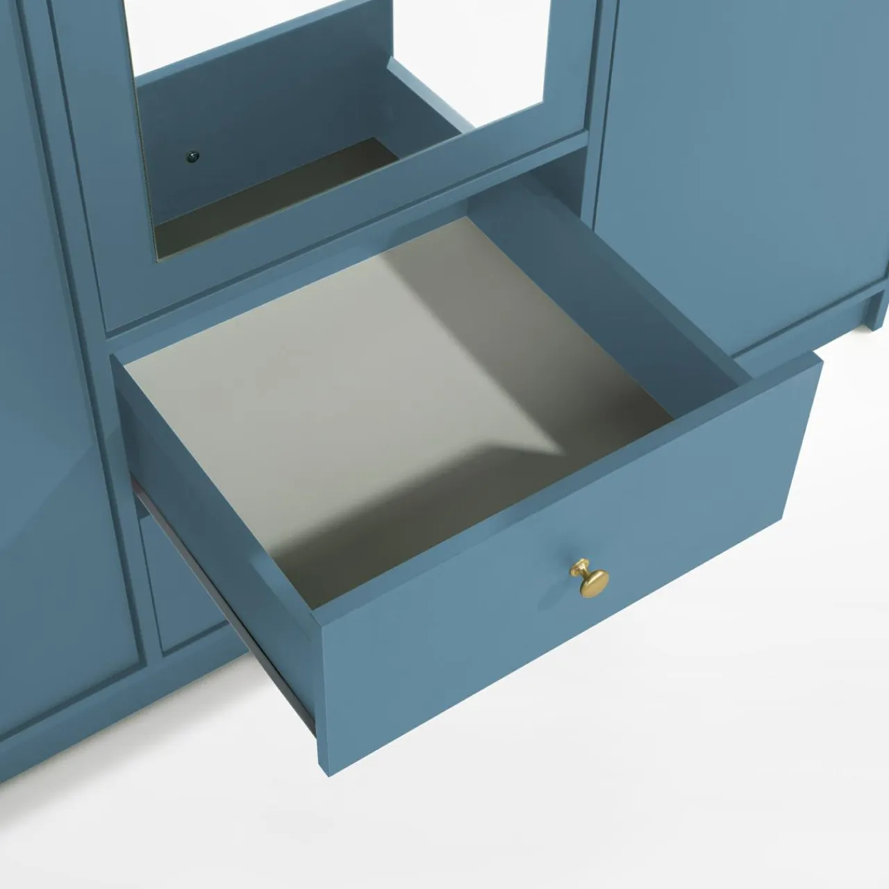- Szafę wyróżnia przygaszony błękitny kolor bryły, który będzie stanowić wyróżniający się detal pasujący do wnętrz boho i natural.