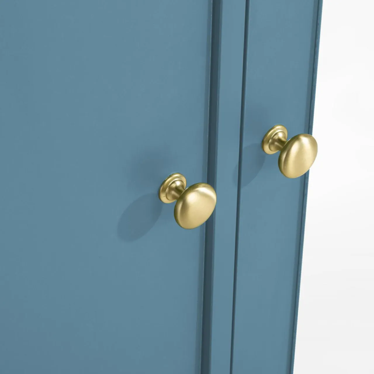- Złote metalowe uchwyty dodają elegancji i stanowią ozdobę błękitnych frontów.