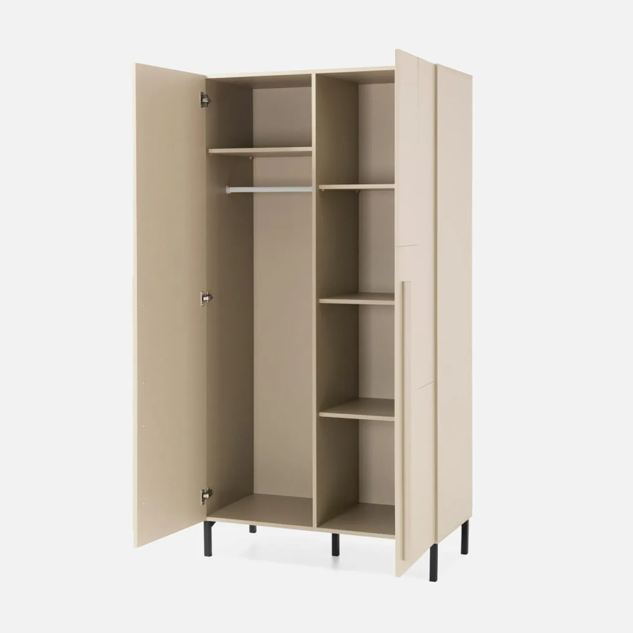 Szafa SERGIO ma tylko 100 cm szerokości. Zmieści się w małym pomieszczeniu, a Ty przechowasz wszystkie ubrania i tekstylia w jednym miejscu.