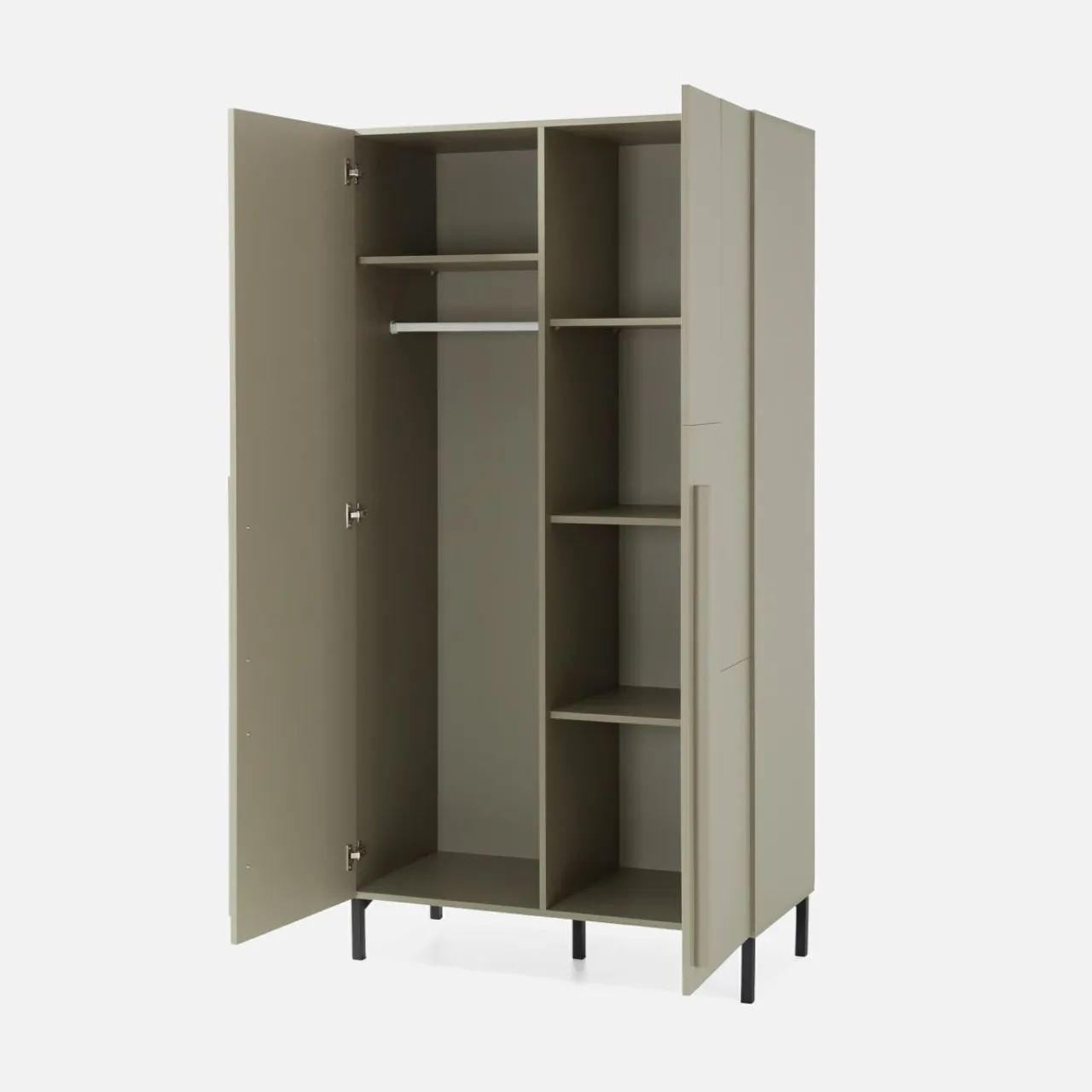 Szafa SERGIO ma tylko 100 cm szerokości. Zmieści się w małym pomieszczeniu, a Ty przechowasz wszystkie ubrania i tekstylia w jednym miejscu.