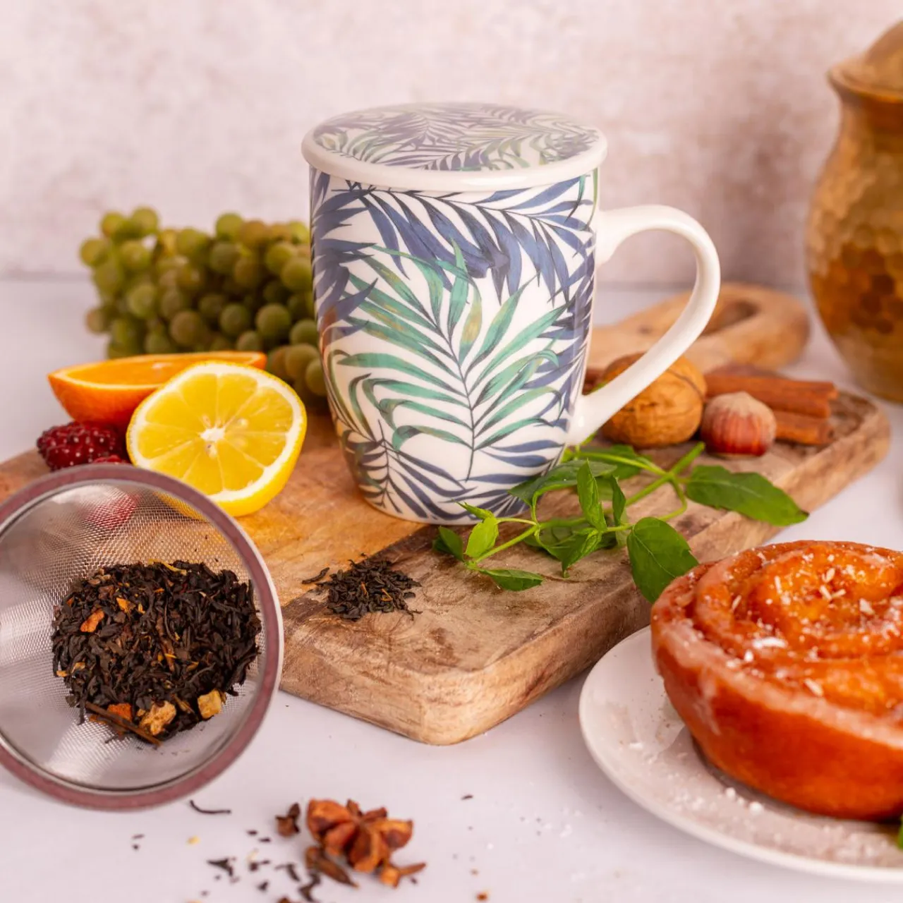 Szklanki I Kubki|inny Kubek z zaparzaczem i pokrywką LIŚCIE 340 ml