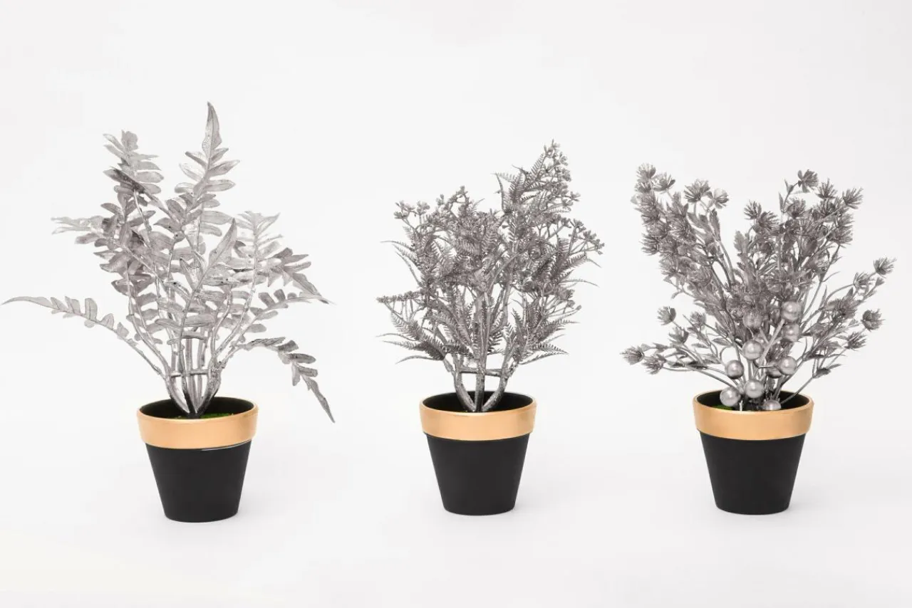 Sztuczna roślina w kolorze srebrnym w doniczce 24 cm MIX