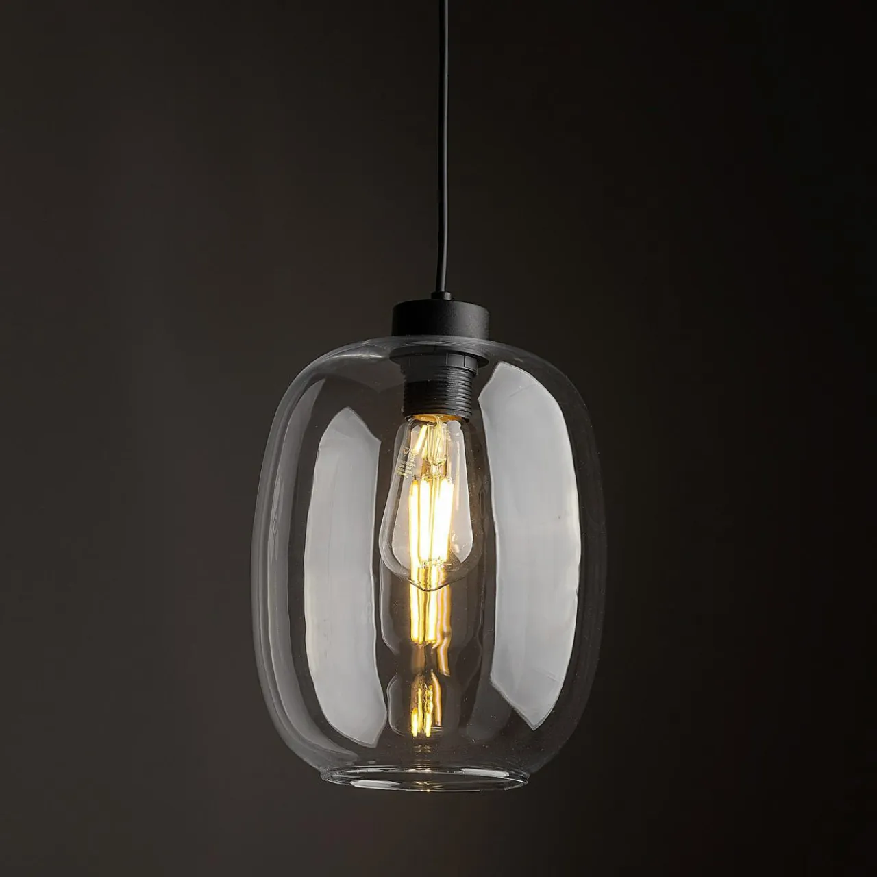 Możesz ją podwiesić na szynie montowanej wnętrz pomieszczenia. Jej atutem jest przejrzysty, szklany klosz, który ukazuje kształt i fason żarówki.