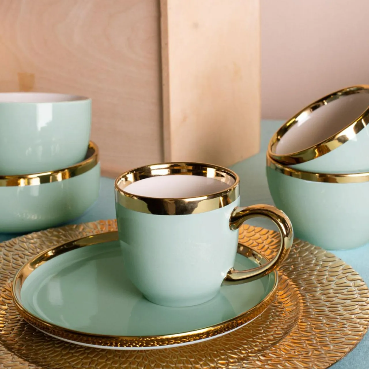 Talerze| Talerz deserowy jasna zieleń AURORA GOLD 20 cm