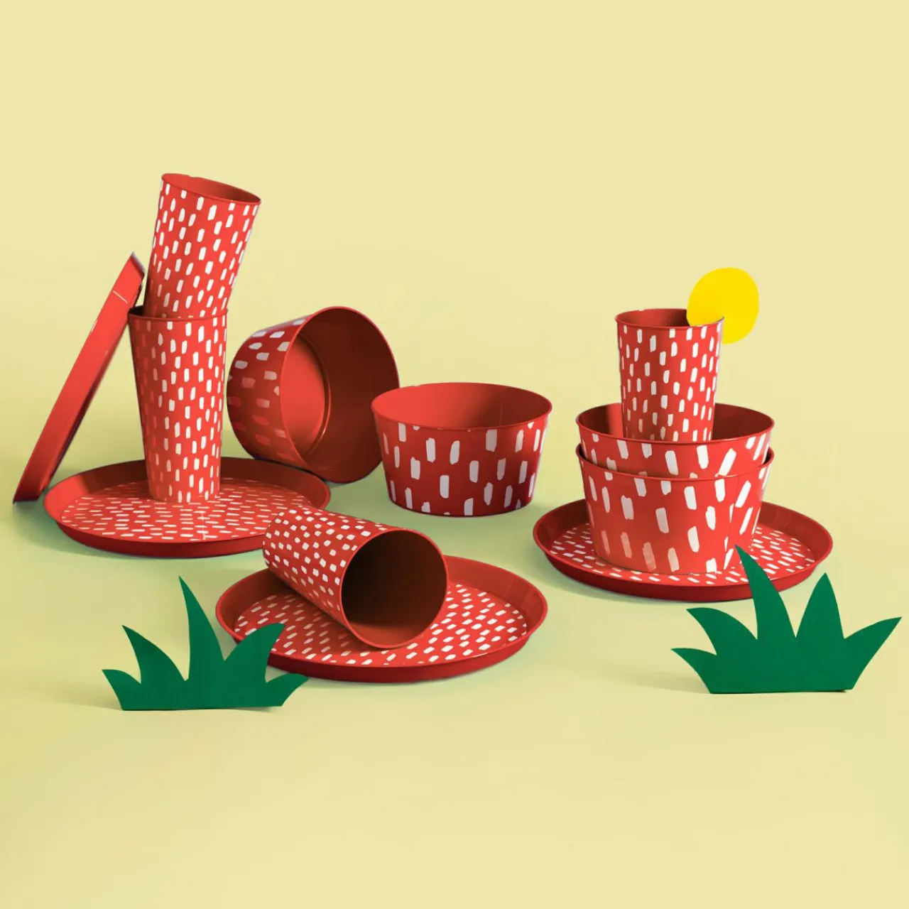 Talerze|inny Zestaw 4 talerzy plastikowych czerwony, 21 cm