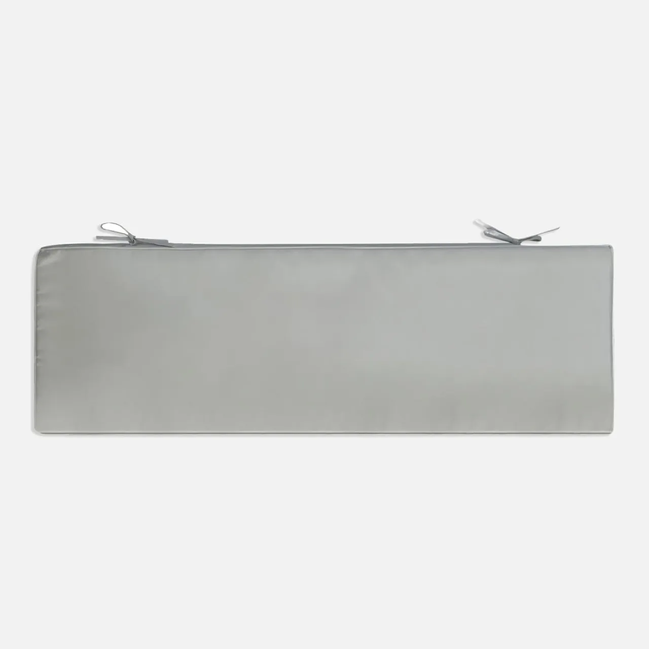 Jasnoszara poduszka na hustawkę SUMMER ZANZI podkreśli zestaw drewnianych mebli ogrodowych.