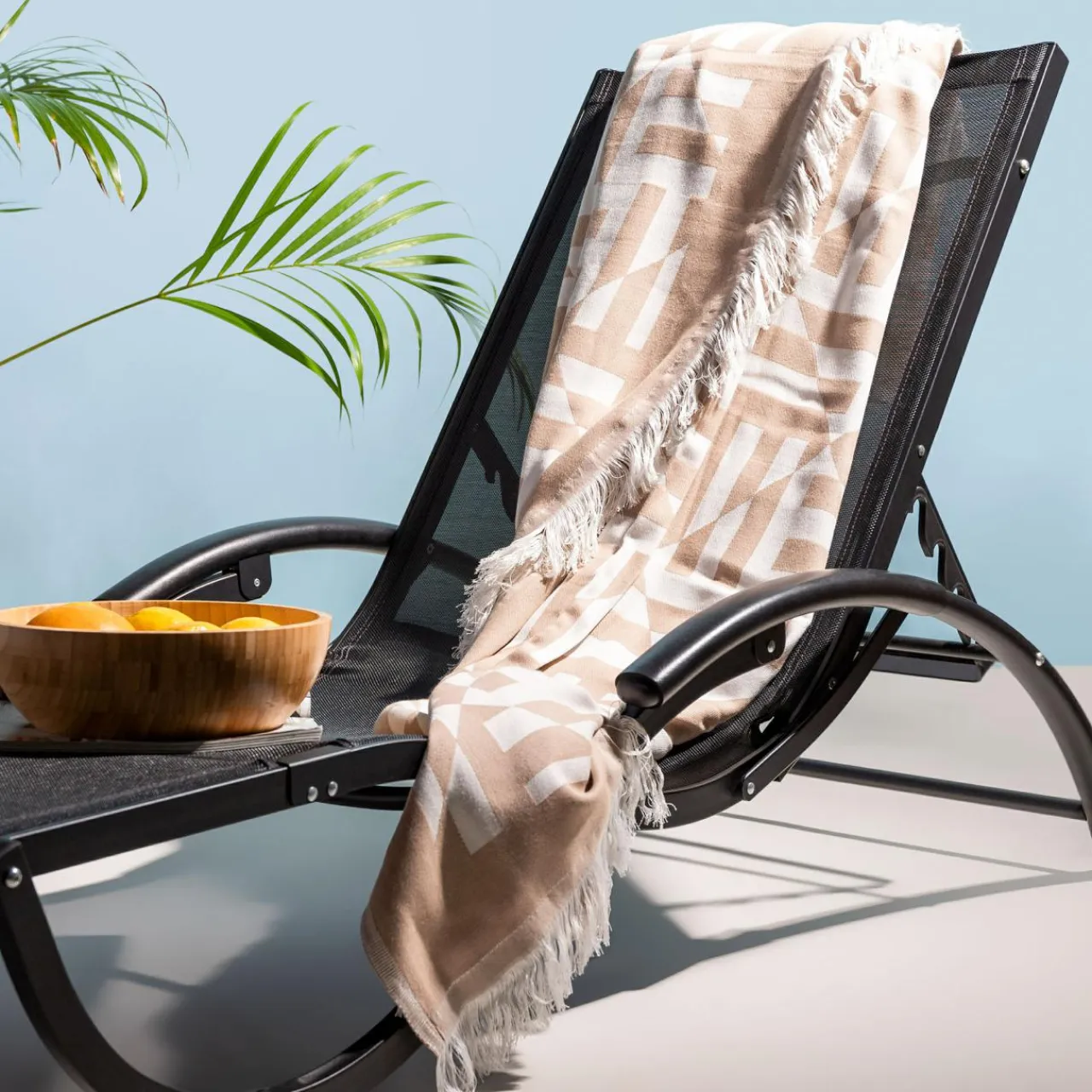 Pled z frędzlami MIRROR pomoże się zrelaksować i poczuć wakacyjny klimat.