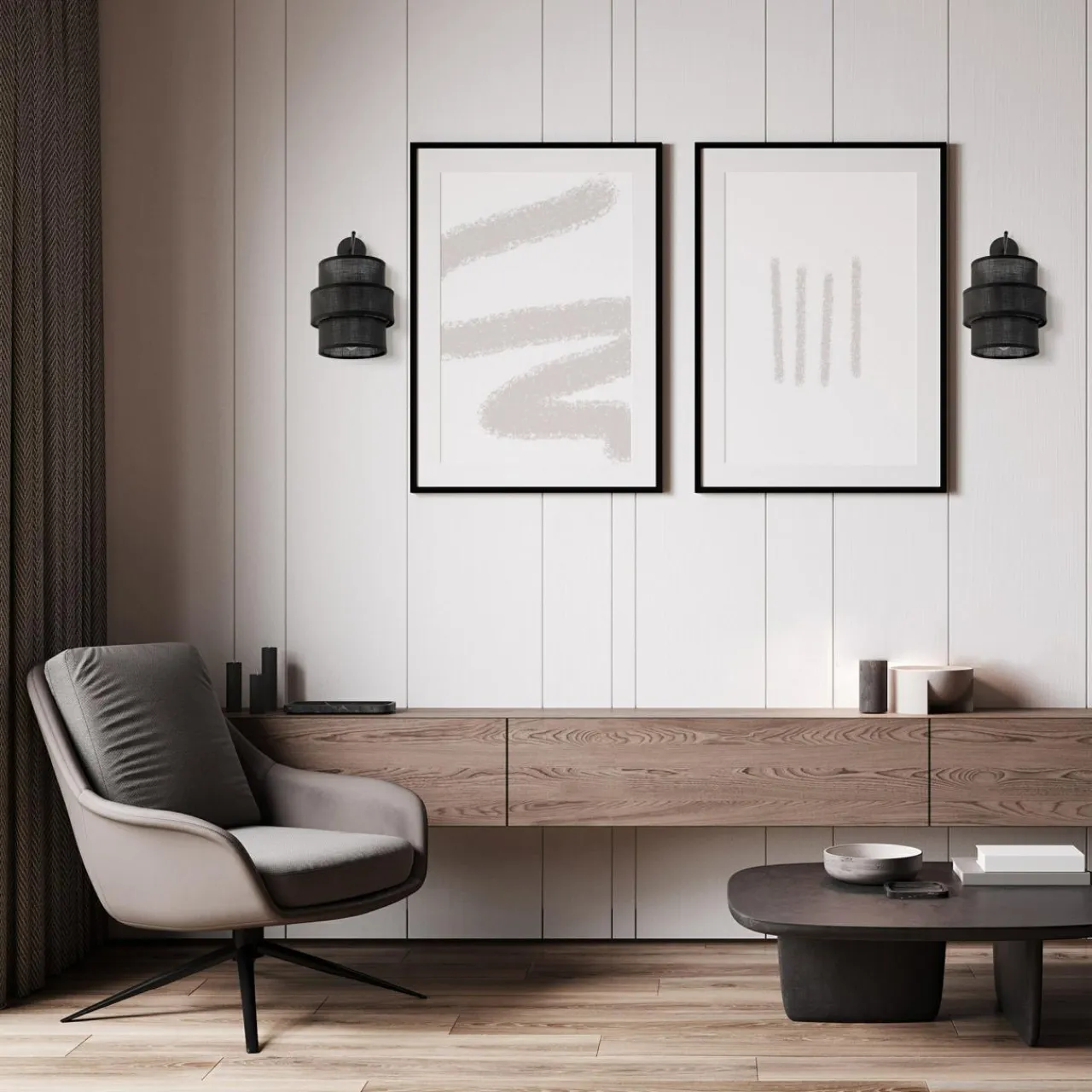 - Czarna kolorystyka tkaniny abażurów podkreśla surowość, która zestawiona z jasnymi wnętrzami pozwala uzyskać efekt kontrastu, który świetnie uwypukli nowoczesny styl w wystroju wnętrza.
