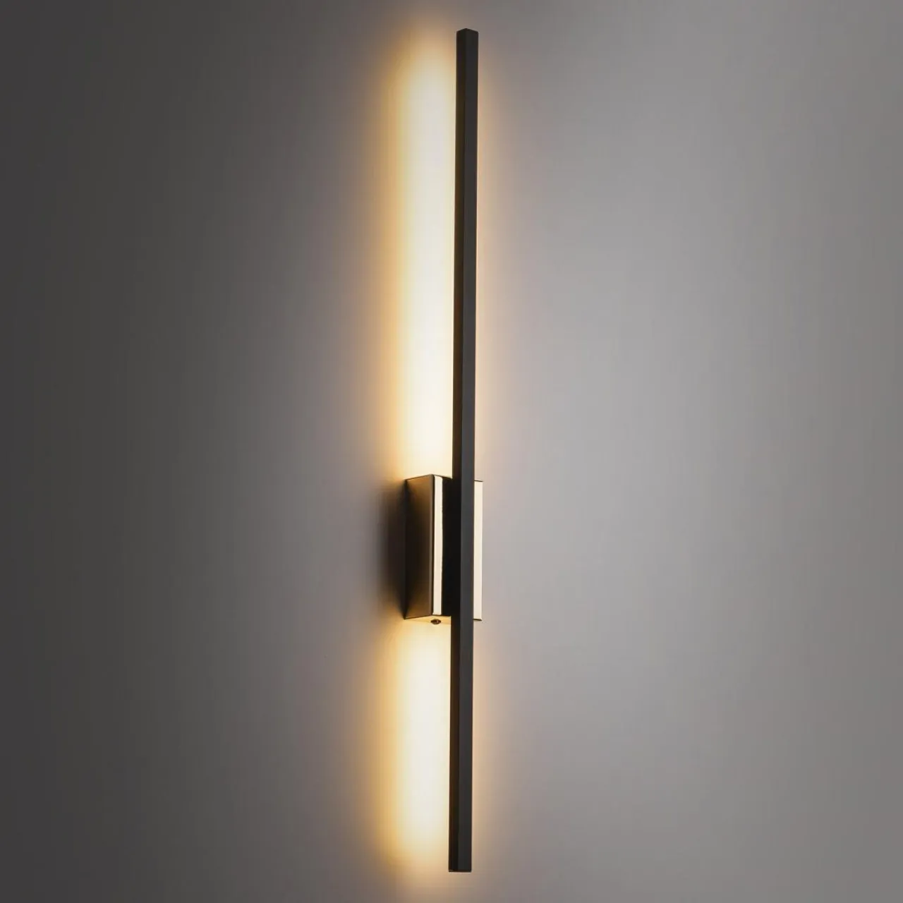 Kinkiet posiada niewielką podstawę, którą montujemy do powierzchni ściany. Obiega od niej ramię z pionowo założoną listwą, wewnątrz której został ukryty zwrócony do ściany pasek LED.