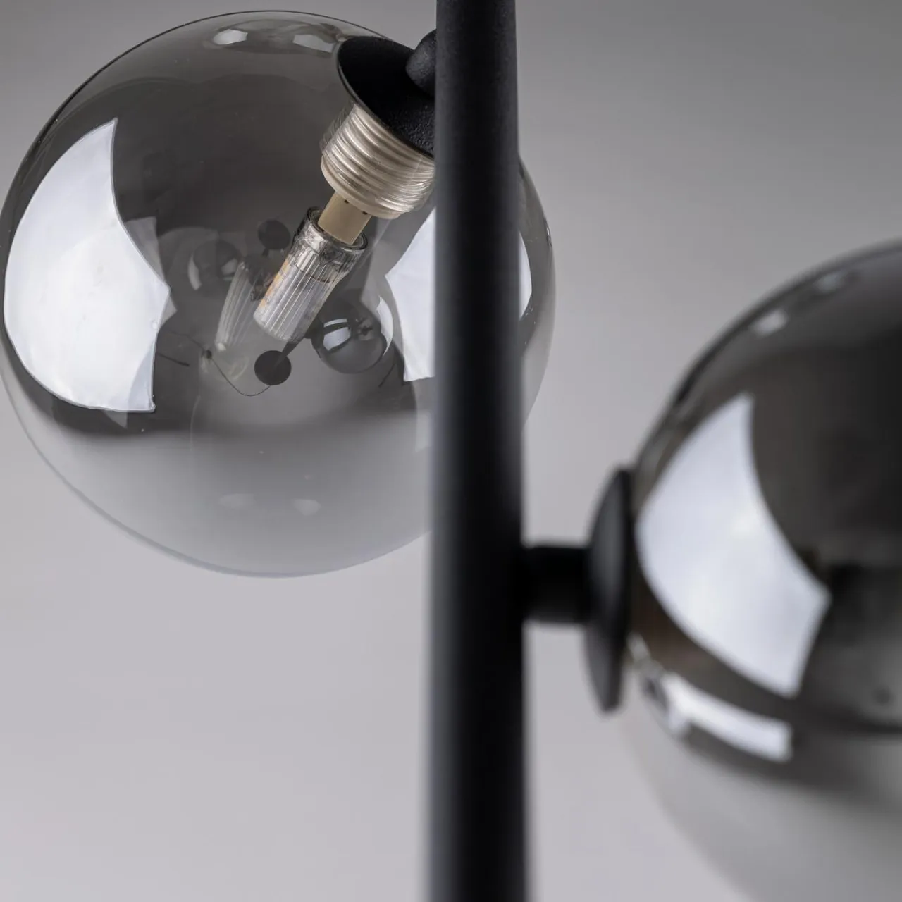 - Żarówki osłaniają kuliste, transparentne, lekko przyciemnione klosze.