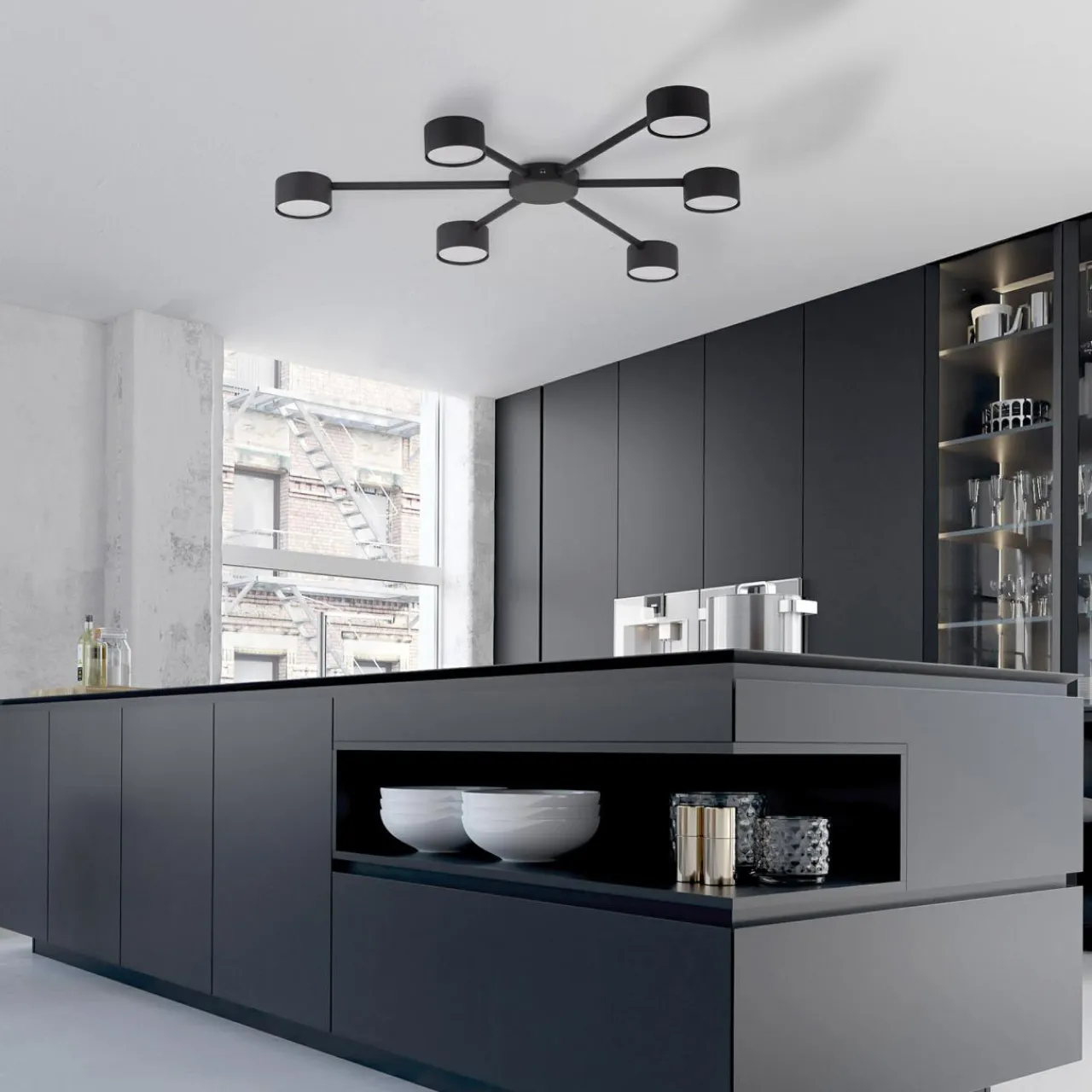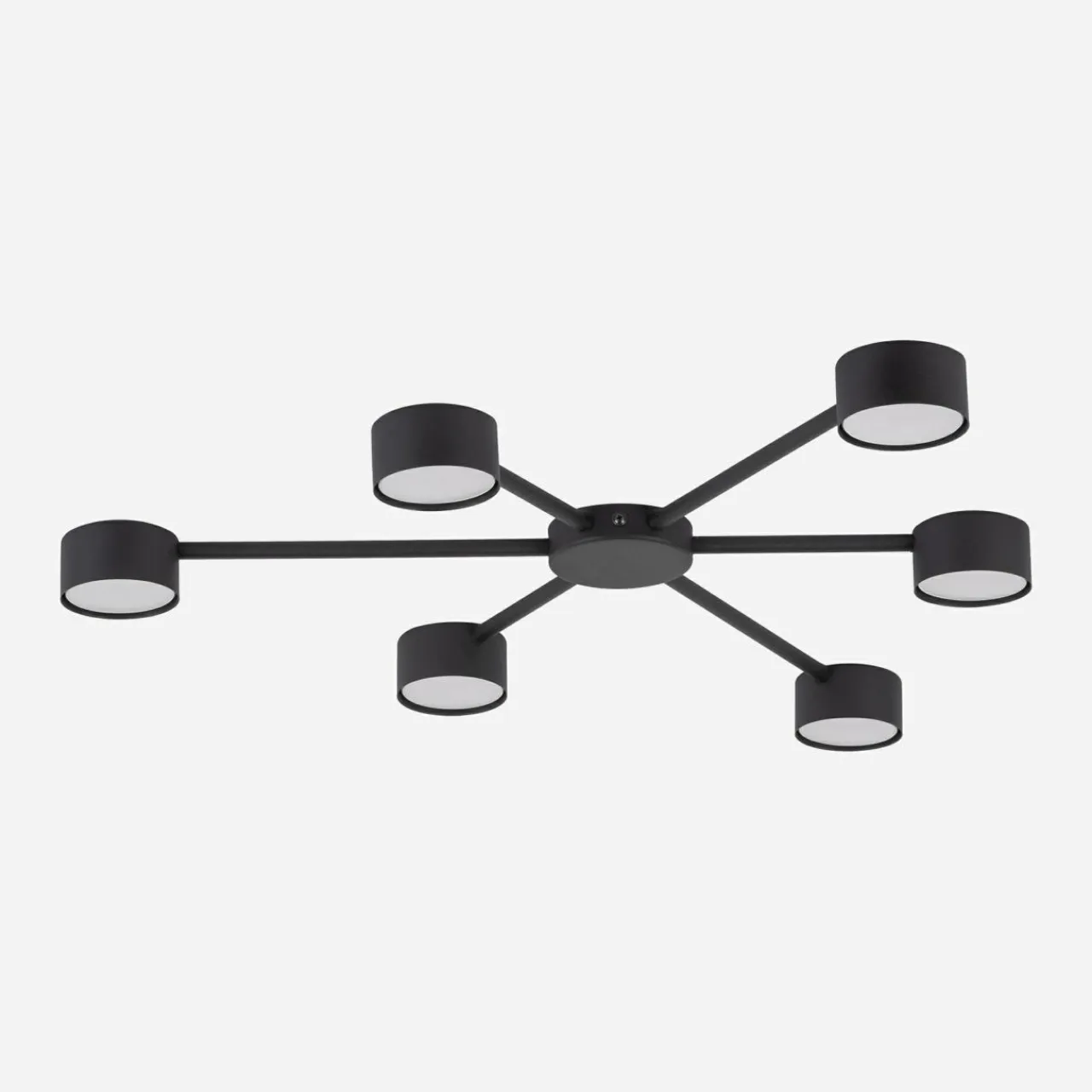 AVIA BLACK to 6-punktowa lampa, której znakiem rozpoznawczym jest oszczędna estetyka, oparta na prostej podstawie i promieniście umieszczonych ramionach. Każde z nich zakończone jest oprawą przeznaczoną dla żarówek typu GX53.