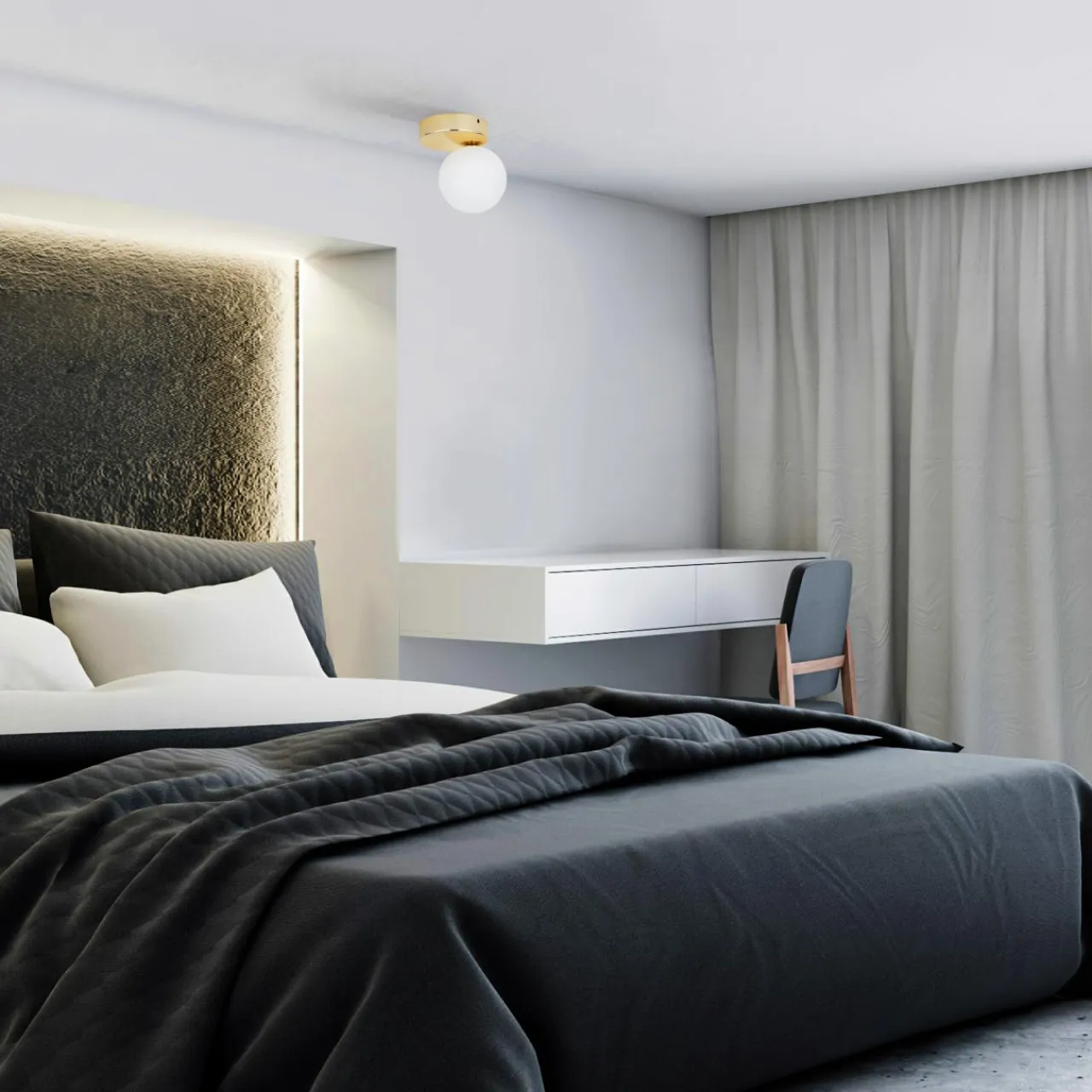 - Klosz o kształcie kuli doskonale poddaje się temperaturze barwowej emitowanego światła – w zależności od tego jakie, żarówki zamontujesz zmieni się odcień bieli podczas świecenia lampy.