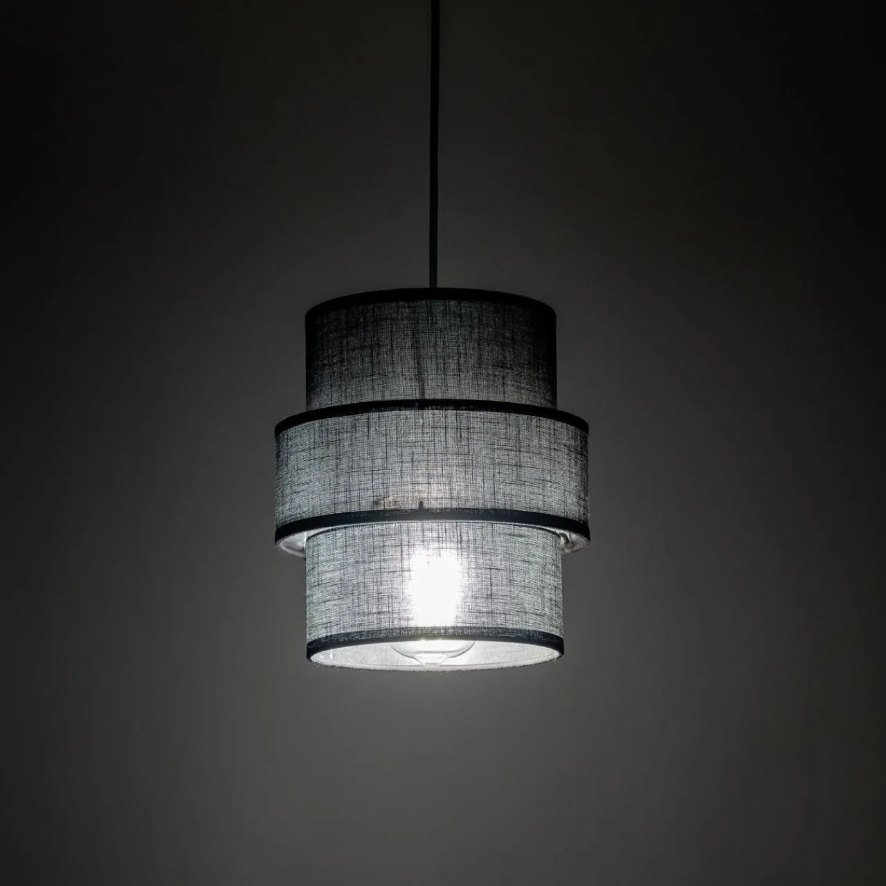 - Czarna kolorystyka tkaniny abażuru podkreśla surowość, która zestawiona z jasnymi wnętrzami pozwala uzyskać efekt kontrastu, który świetnie uwypukli nowoczesny styl w wystroju wnętrza.