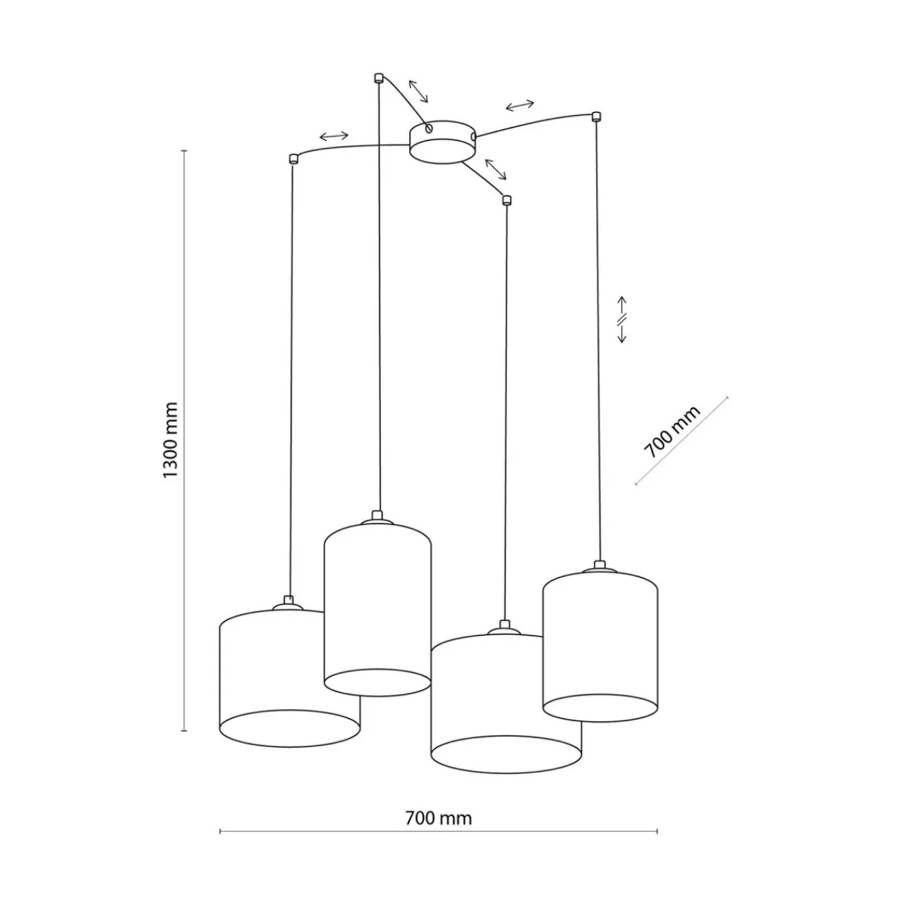 W tym modelu lampy wiszącej możesz dopasować wysokość zawieszenia. Maksymalna wysokość to 130 cm.