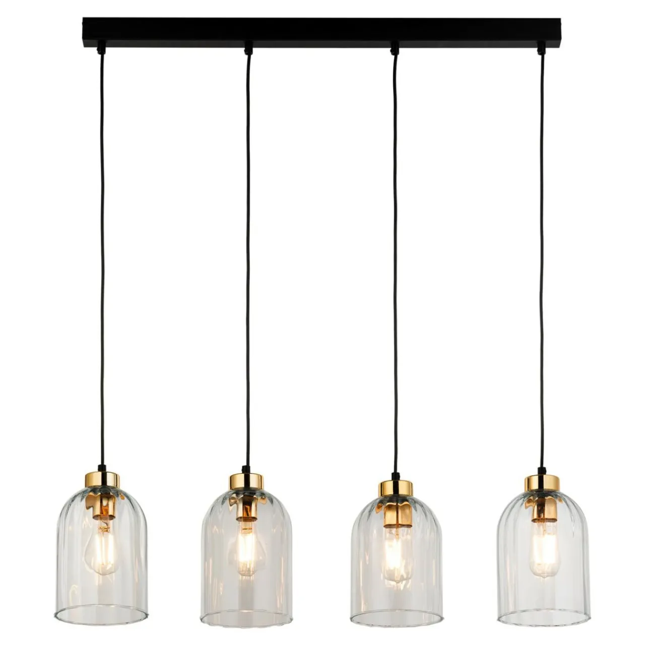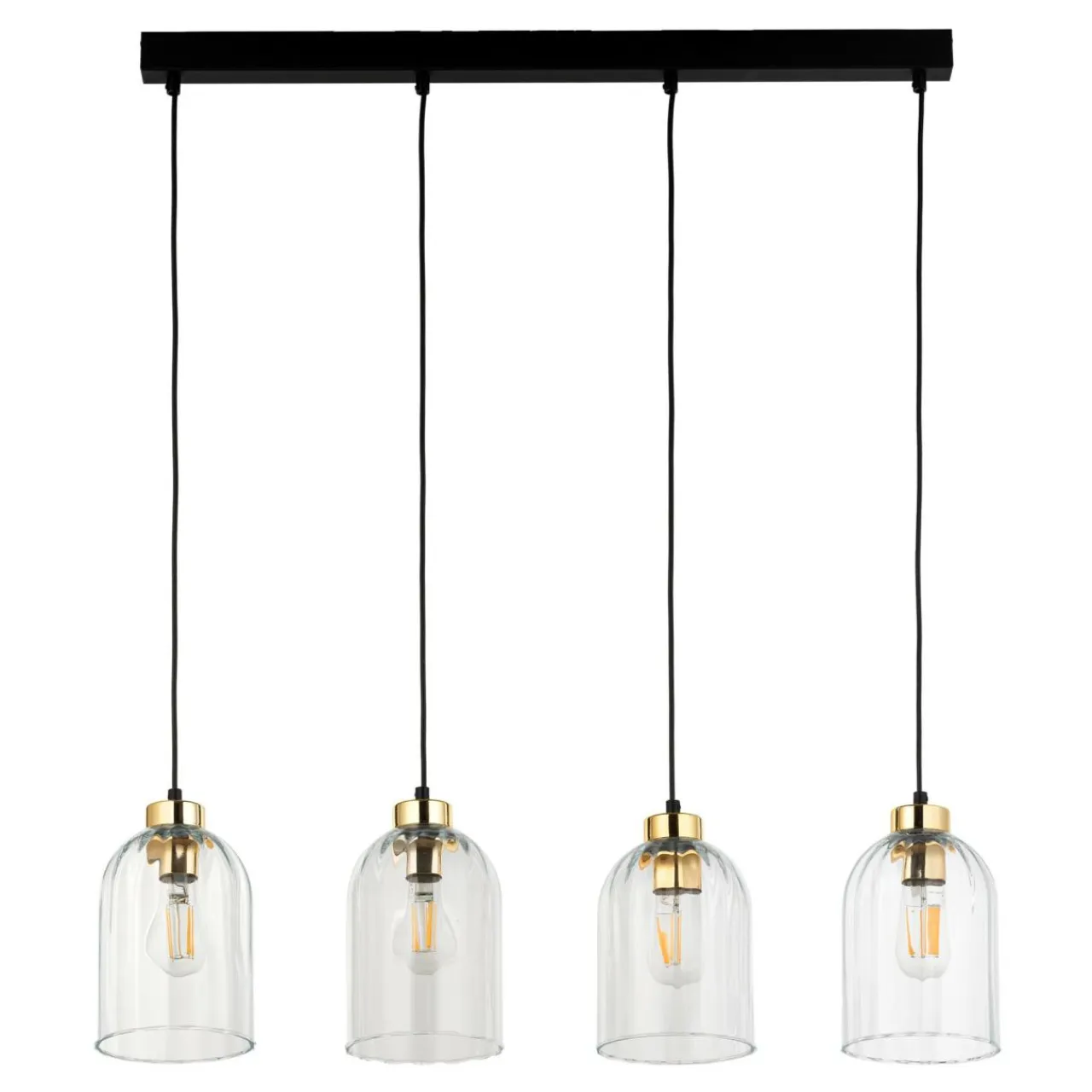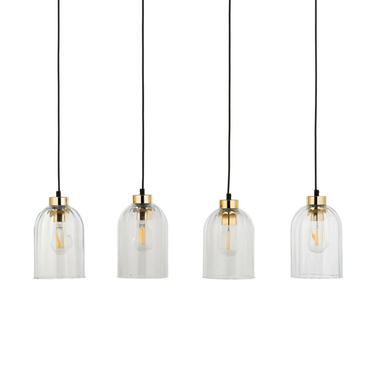 Ten model z podstawą o kształcie listwy i 4 szeregowo zawieszonymi kloszami świetnie odnajdzie się w reprezentacyjnej części mieszkania.