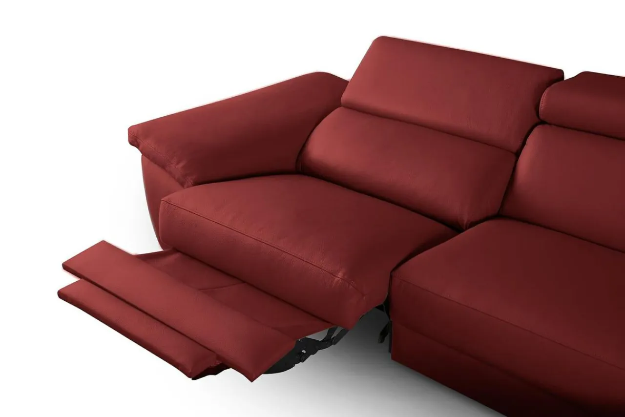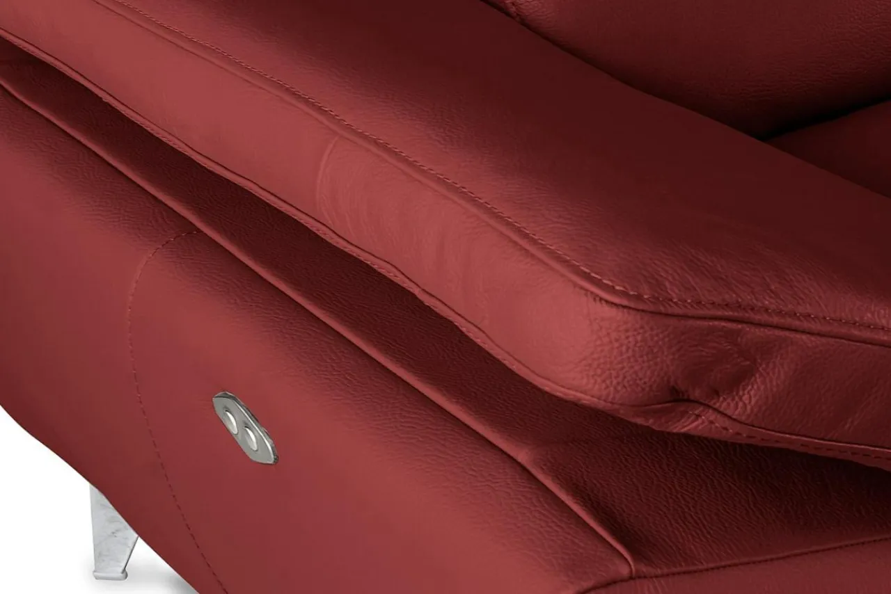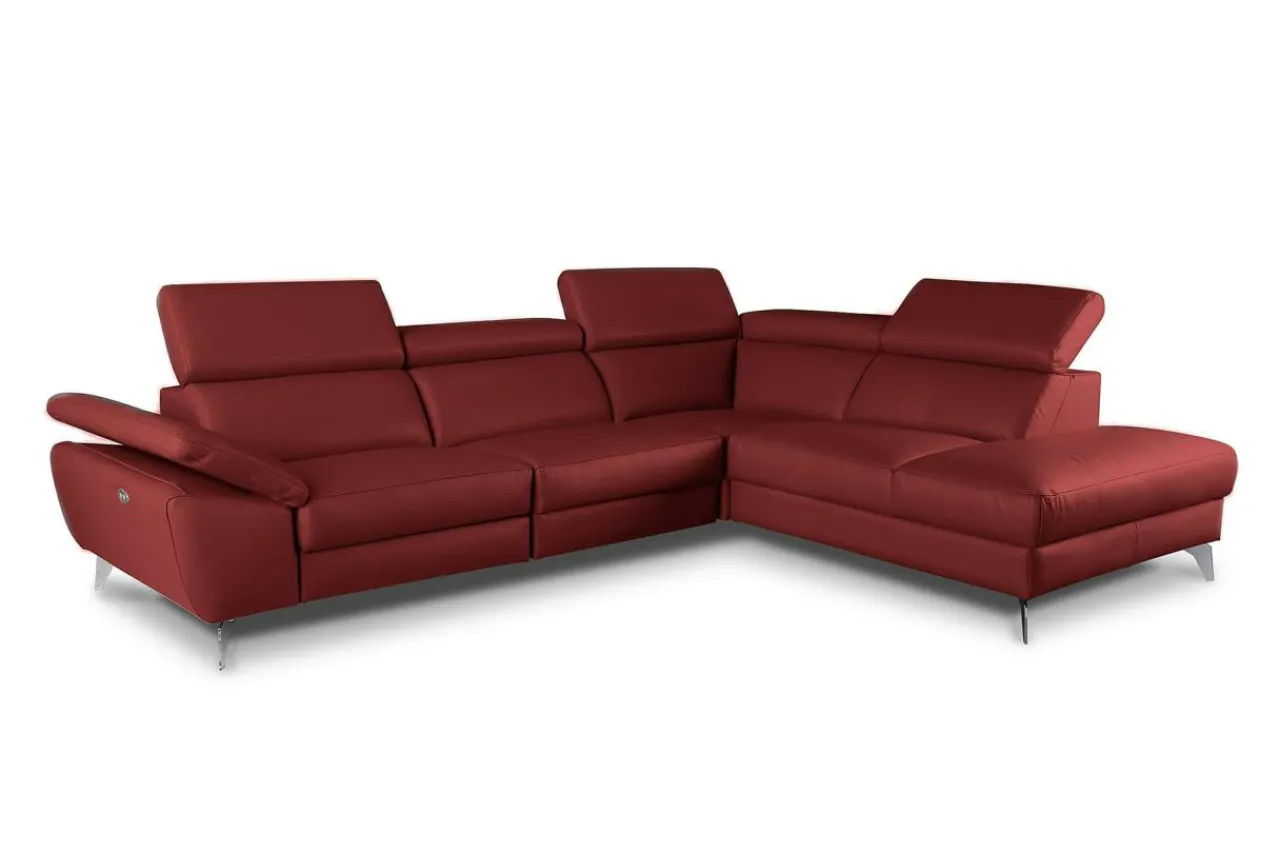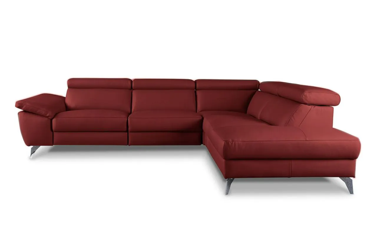 Narożnik została pokryty skórą naturalną z kolekcji DOLLARO w odcieniu RED. Metalowe nóżki podkreślają nowoczesny charakter narożnika i nadają mu nieco smukłości.