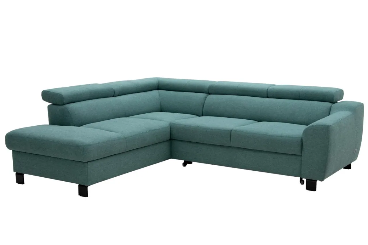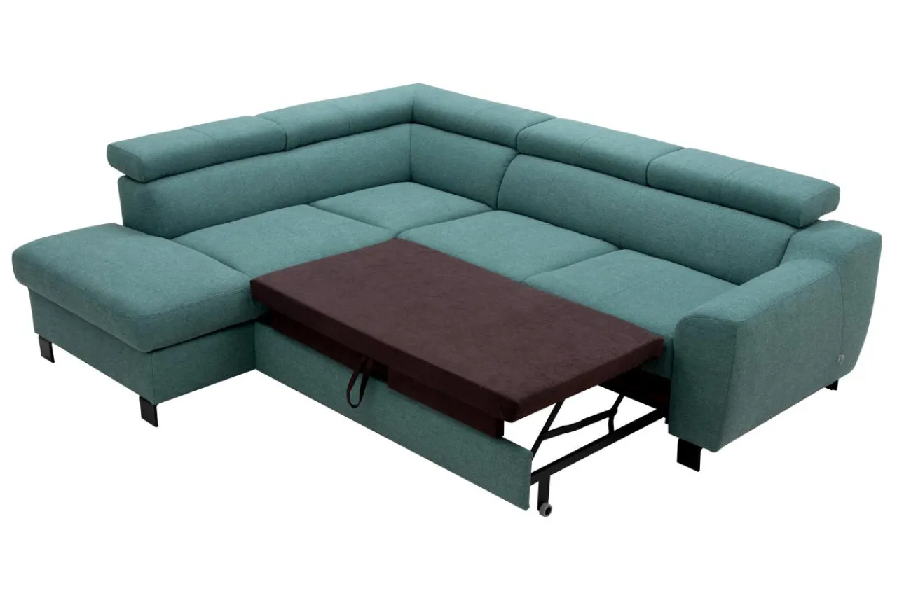 - Nóżki w kolorze czarnym optycznie podnoszą konstrukcję narożnika.
